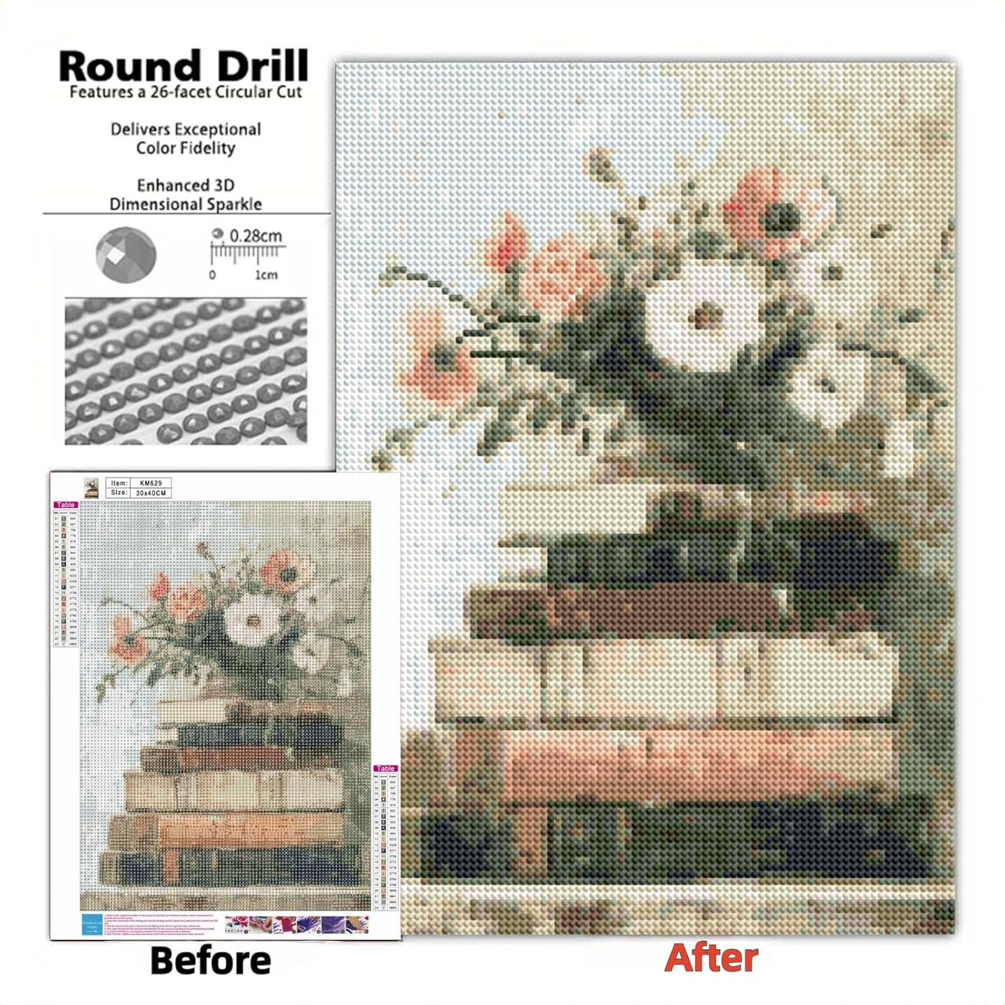 Diamond Art Kits for Adults,Book and Flower 5D Diamond Painting Kits for Adults, DIY Paint by Diamonds,Full Drill Round Diamond Gem Art Painting, for Home Wall Art Decor 11.8 X 15.7 inch