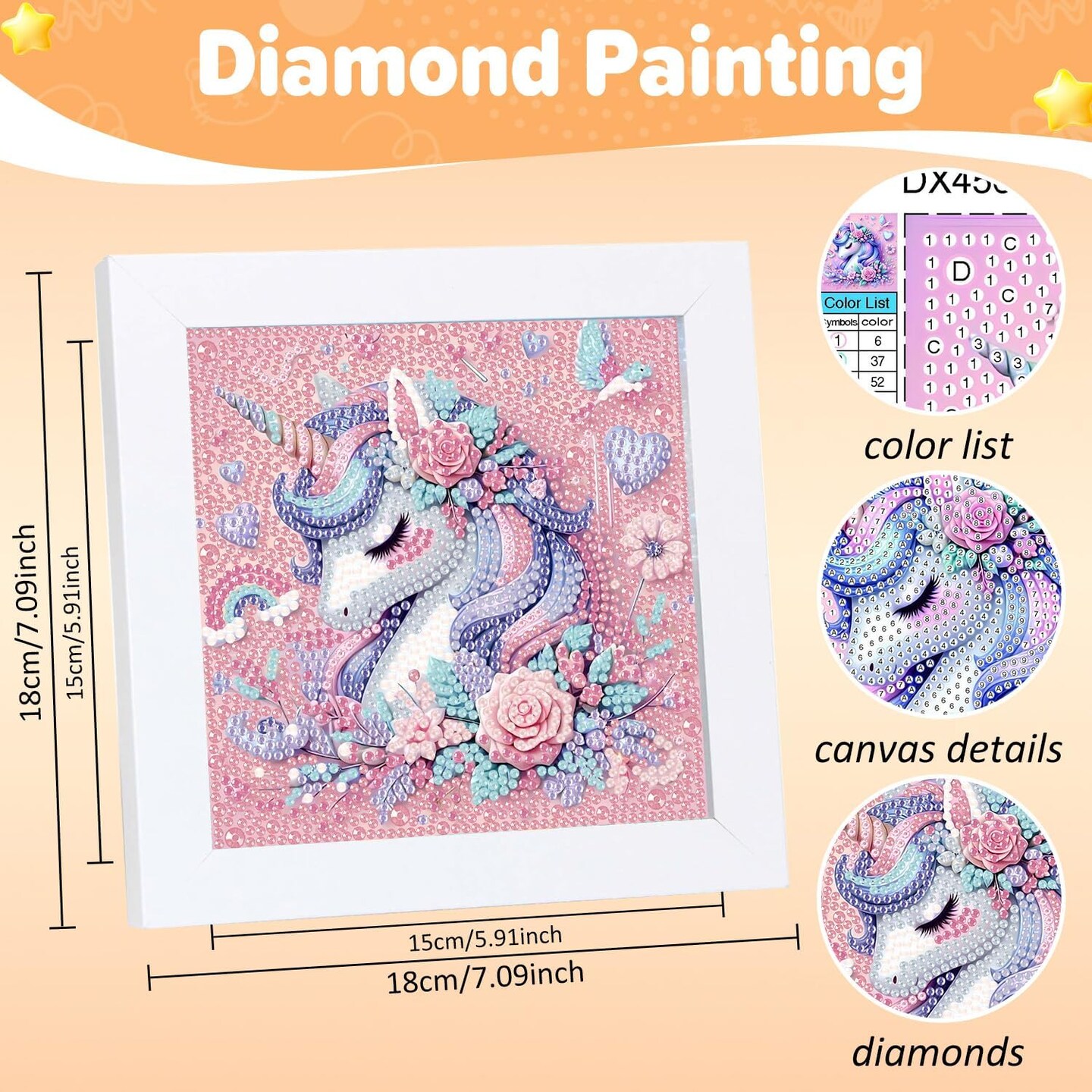Diamond Art Kits for Kids – Cartoon Gem Painting Crafts for Girls 8-12, DIY Diamond Painting with Frame, Beginners’ Gem Art Kit for Home Wall Decor (6×6 inch)