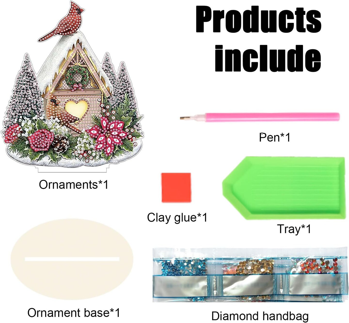 Diamond Art Painting Kit Tabletop Decoration - (Christmas Bird House)
