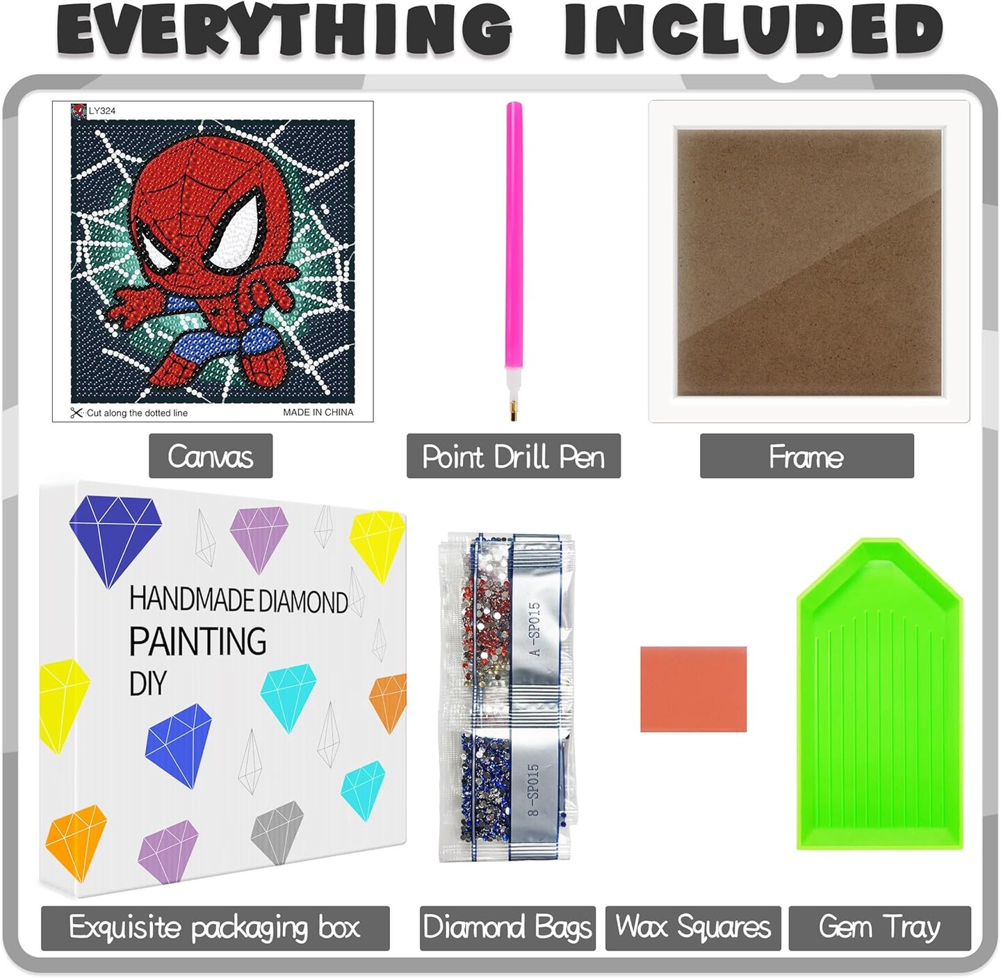 Diamond Art Painting Kit with Frame - DIY Craft for Kids Ages 4-8, Adults - Gift, Home Decoration (Spiderman)