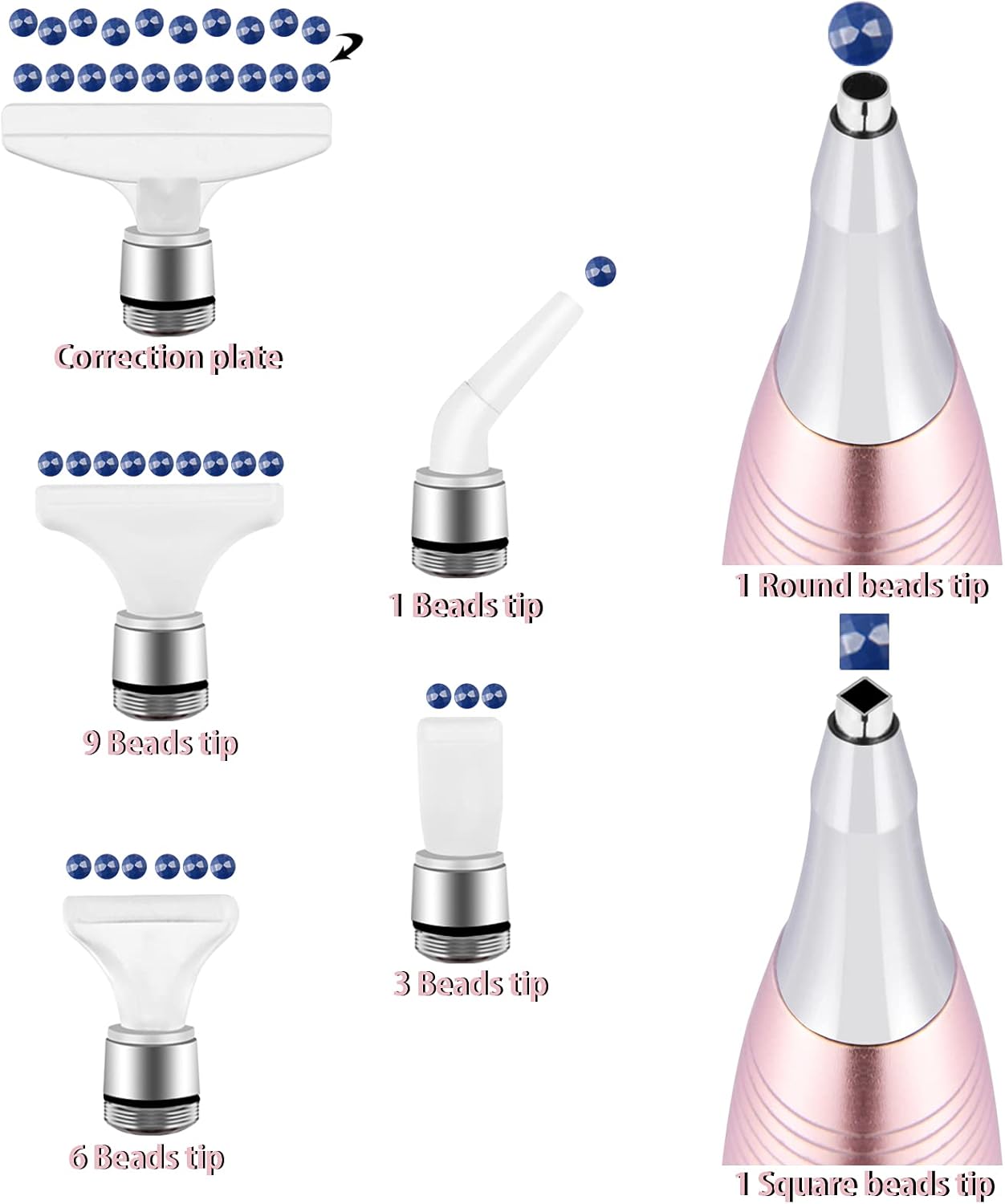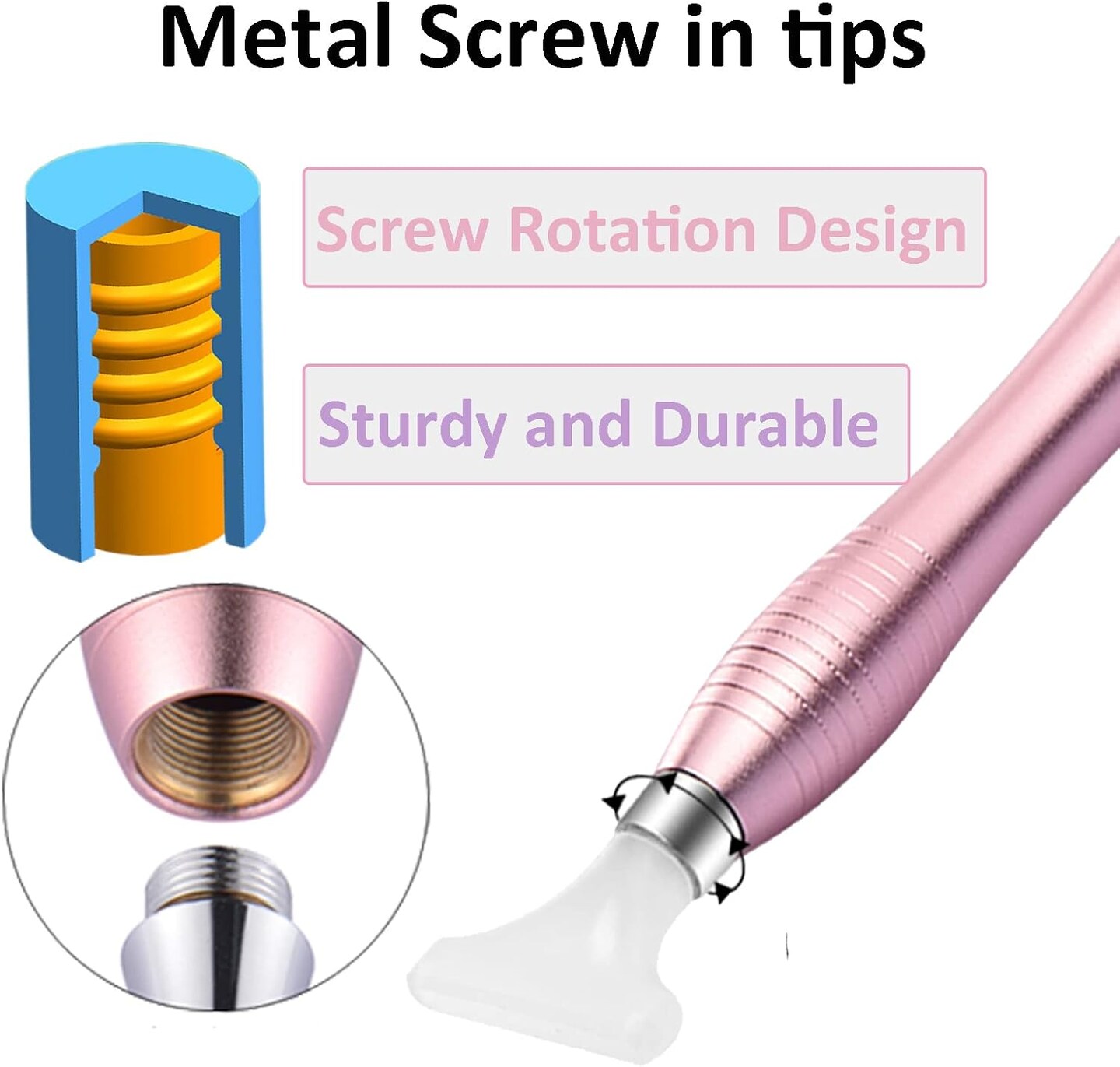 Diamond Art Painting Pen Accessories Tools, Metal Square and Round Tips Ergonomic Diamond Drill Pen Screw In Tip Multi Replacement Pen Heads for DP Cross Stitch - Rose Gold