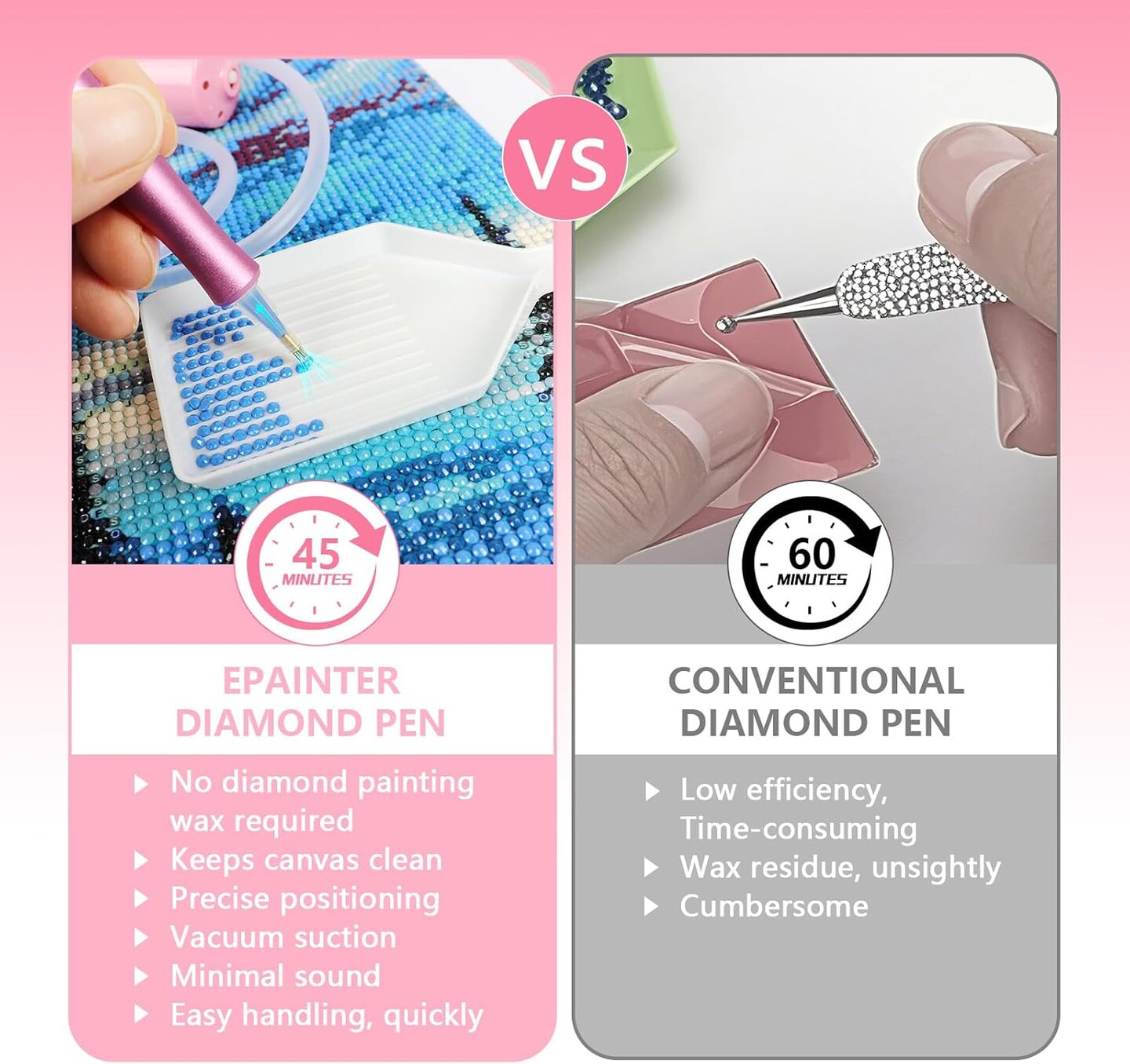 Diamond Art Painting Pen, Epainter Vacuum Pen for Diamond Painting with Storage Tray, Diamond Art Accessories for Setting AB Stones Without Wax, DIY Art Accessories Painting Pen Kit Tools for Adults