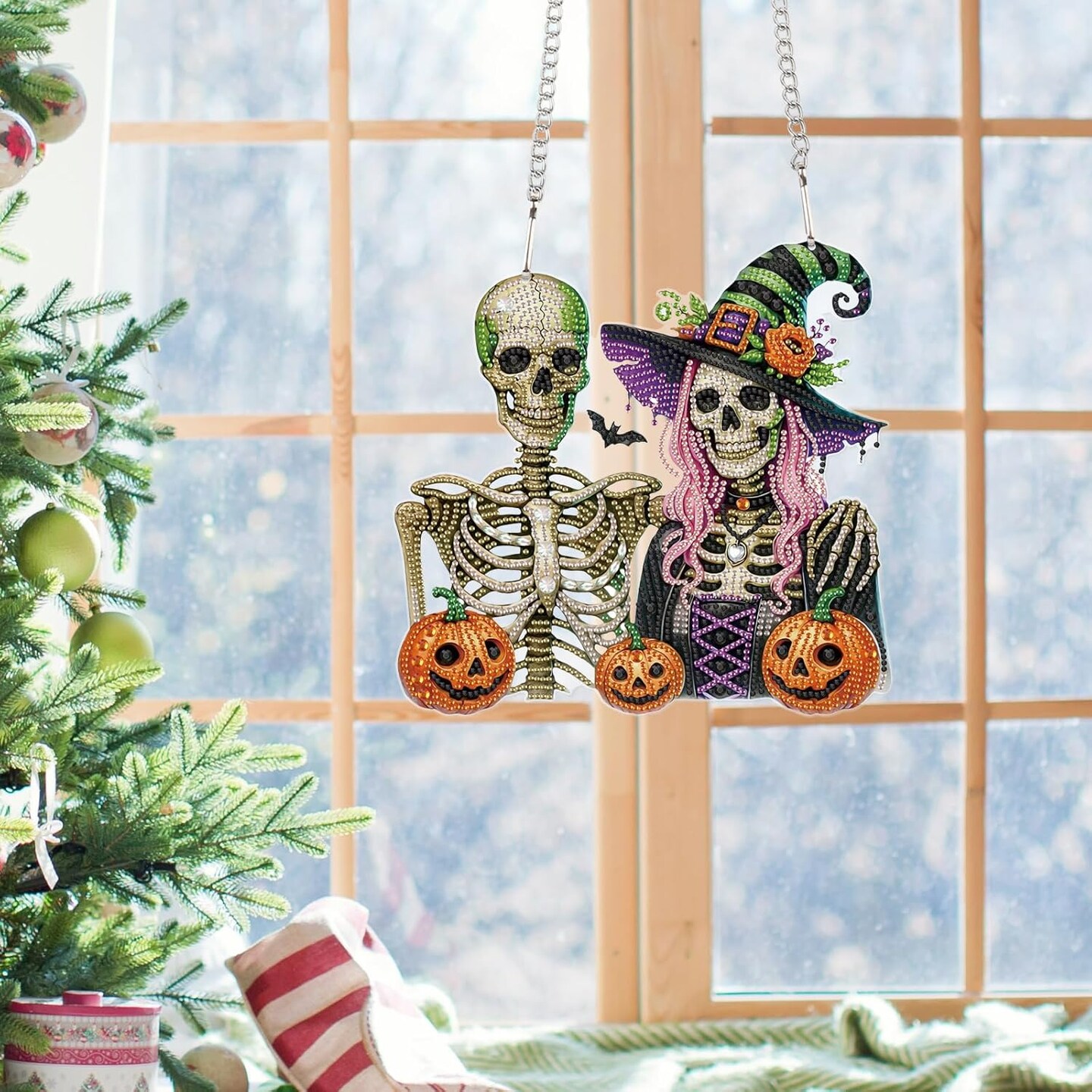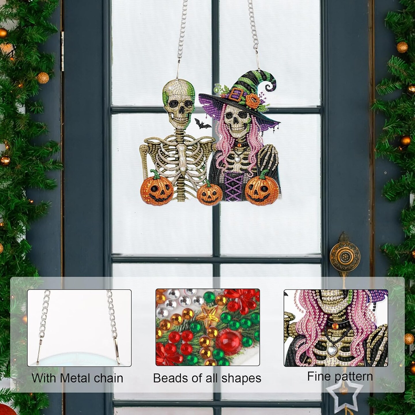 Diamond Art Painting Pendant – 5D Halloween Skull & Pumpkin Hanging Kit (24.1 x 23.1 cm)