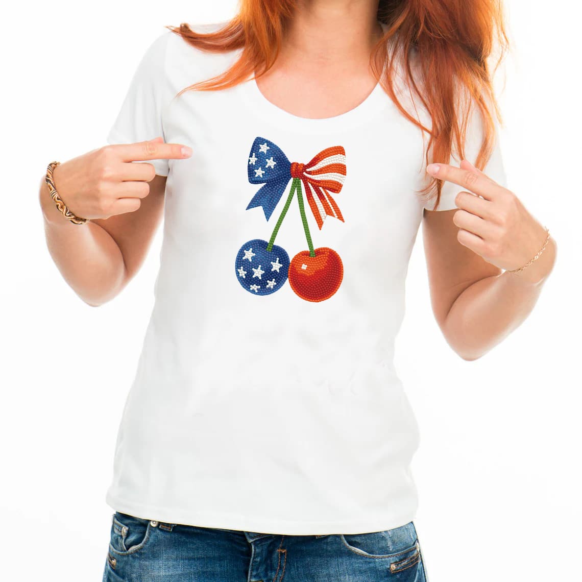 Diamond Dotz® Red, White & Blue Stars & Stripes Cherries Iron-On 'n' Dot Kit