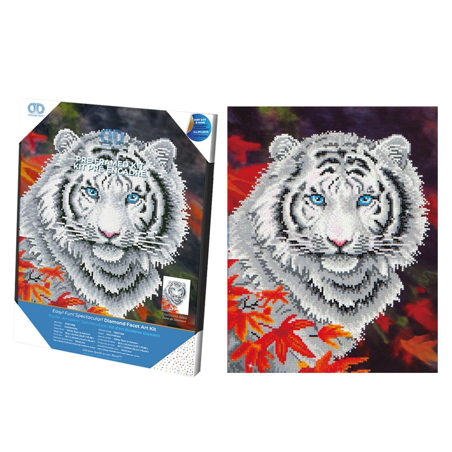 Diamond Dotz White Tiger in Autumn with Frame Animal Diamond Painting Kits for Adults - Diamond Art Kits a Relaxing Creative Craft Kit with Dotz Gems 14"x18"