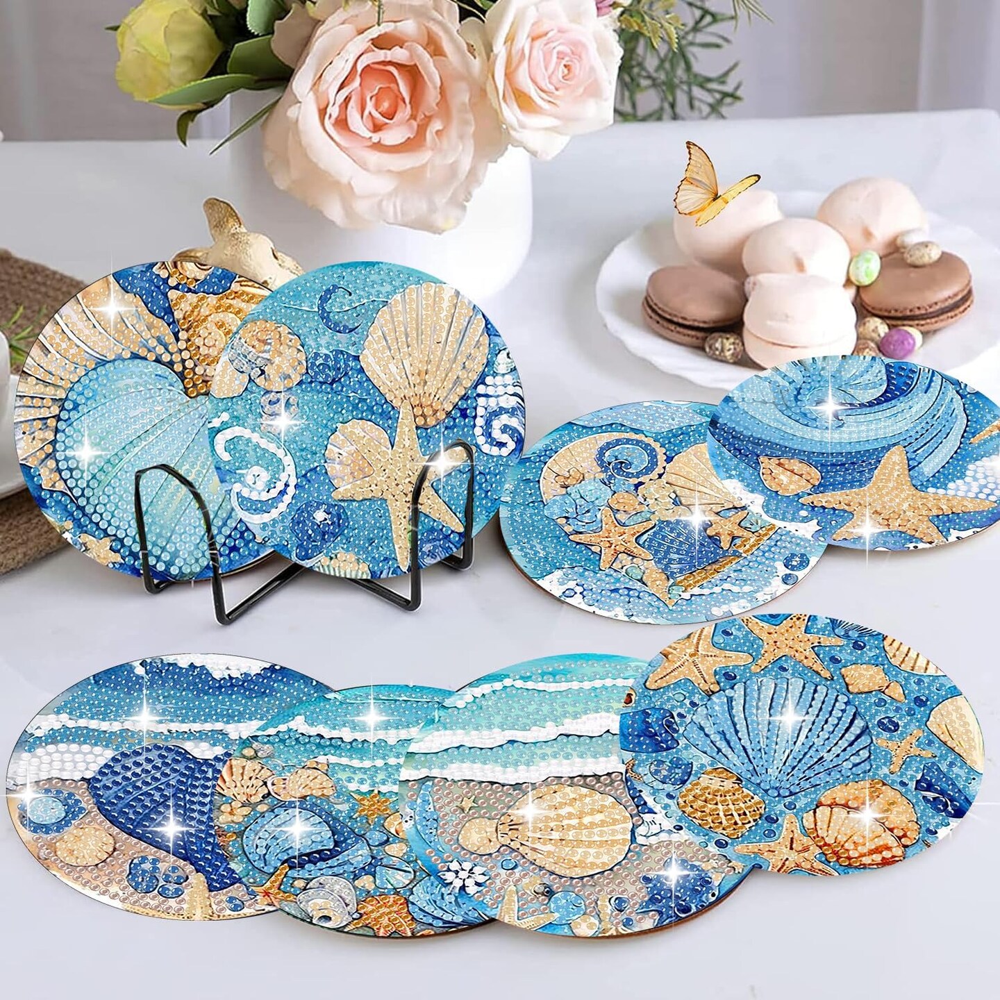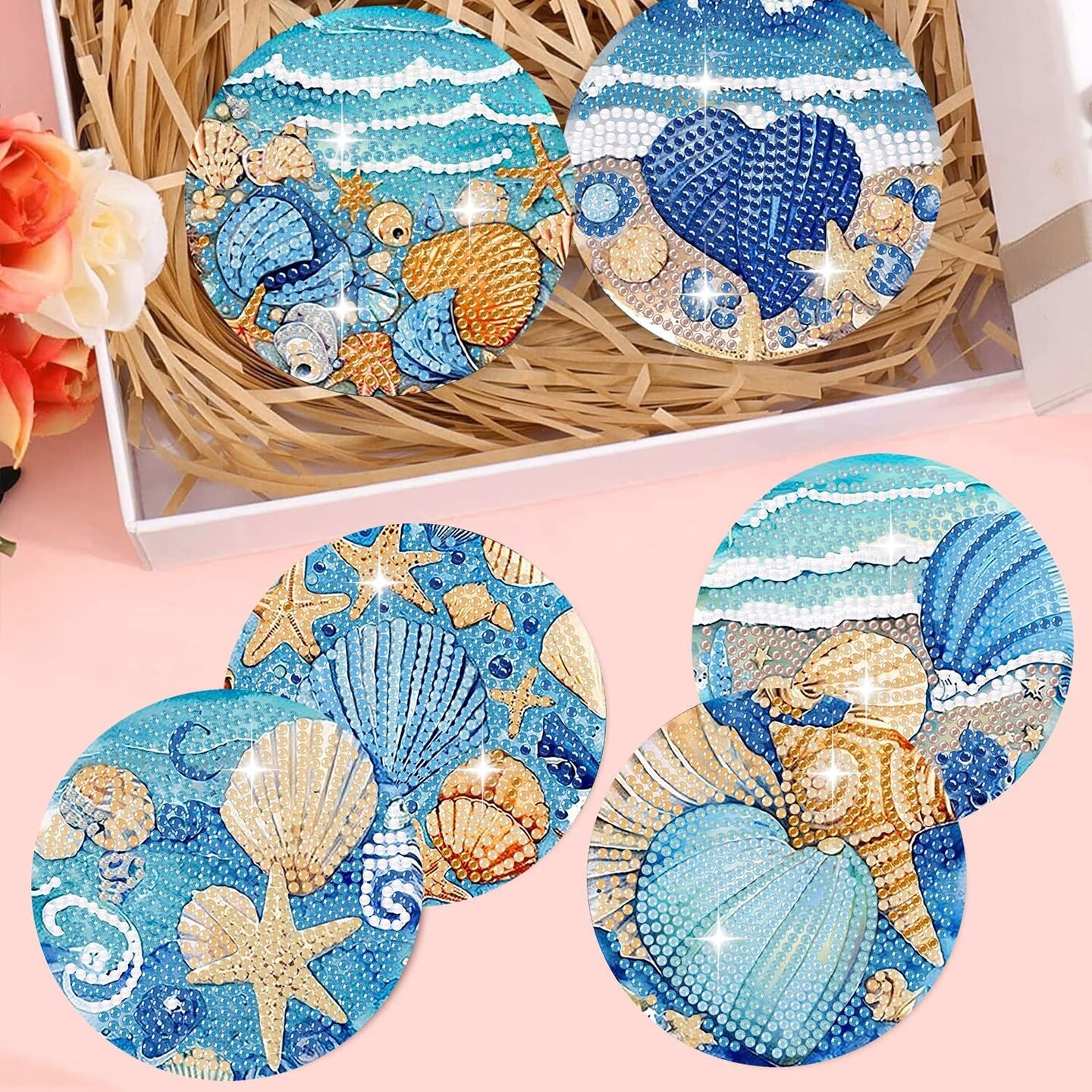 Diamond Painting Coasters Kits Ocean Animals with Holder DIY for Beginners