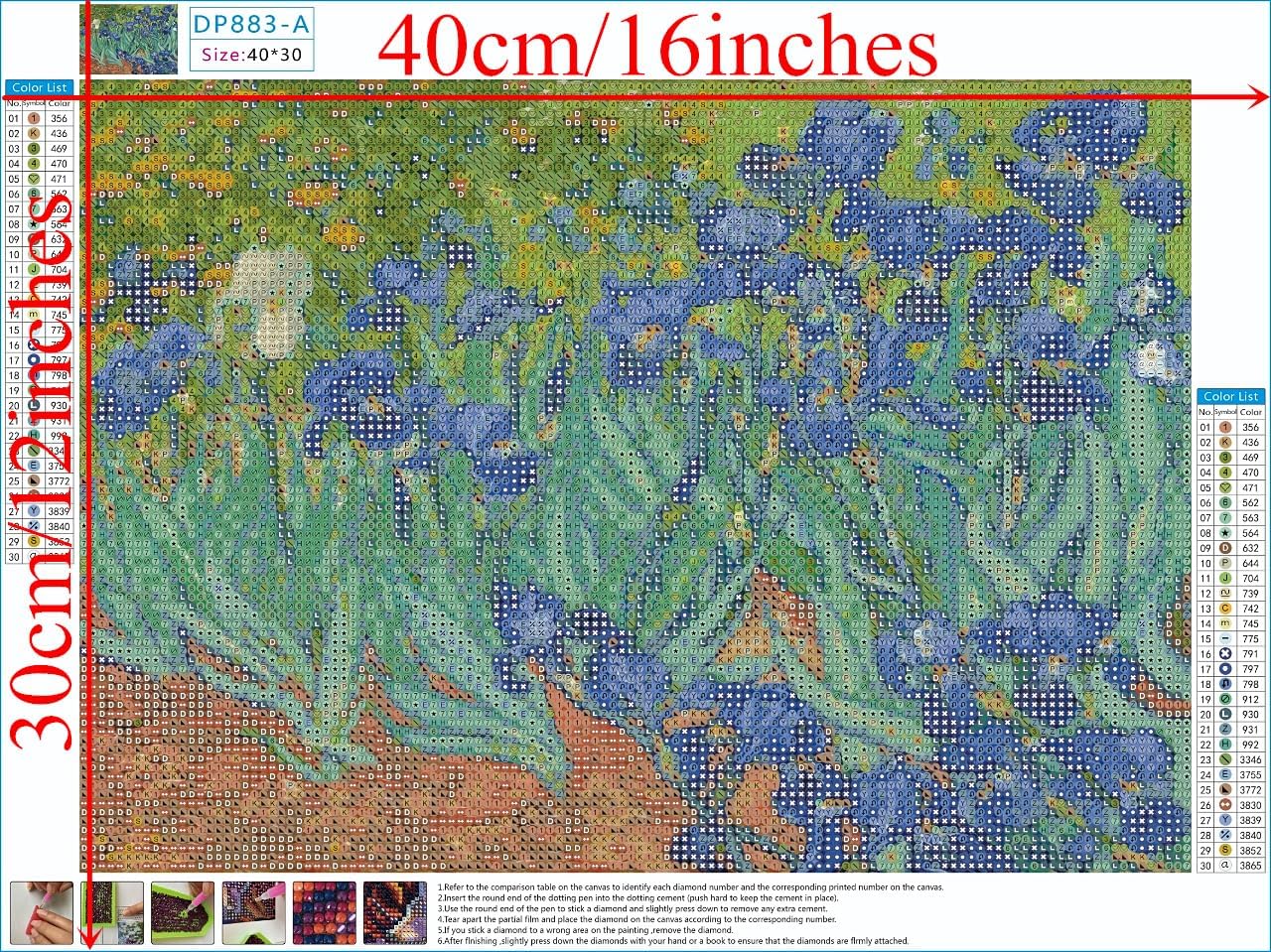 Diamond Painting Kit – Van Gogh “Irises” 5D Full Drill DIY Art, 12×16 in (30×40 cm), Adult & Teen Craft & Home Decoration Gift