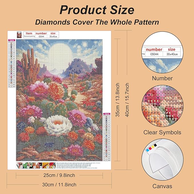 Diamond Painting Kits for Adults, 5D DIY Diamond Art Kits for Beginners, Full Drill Diamond Painting Kits for Home Wall Decor, Desert Cactus Flowers, 12x16 Inch