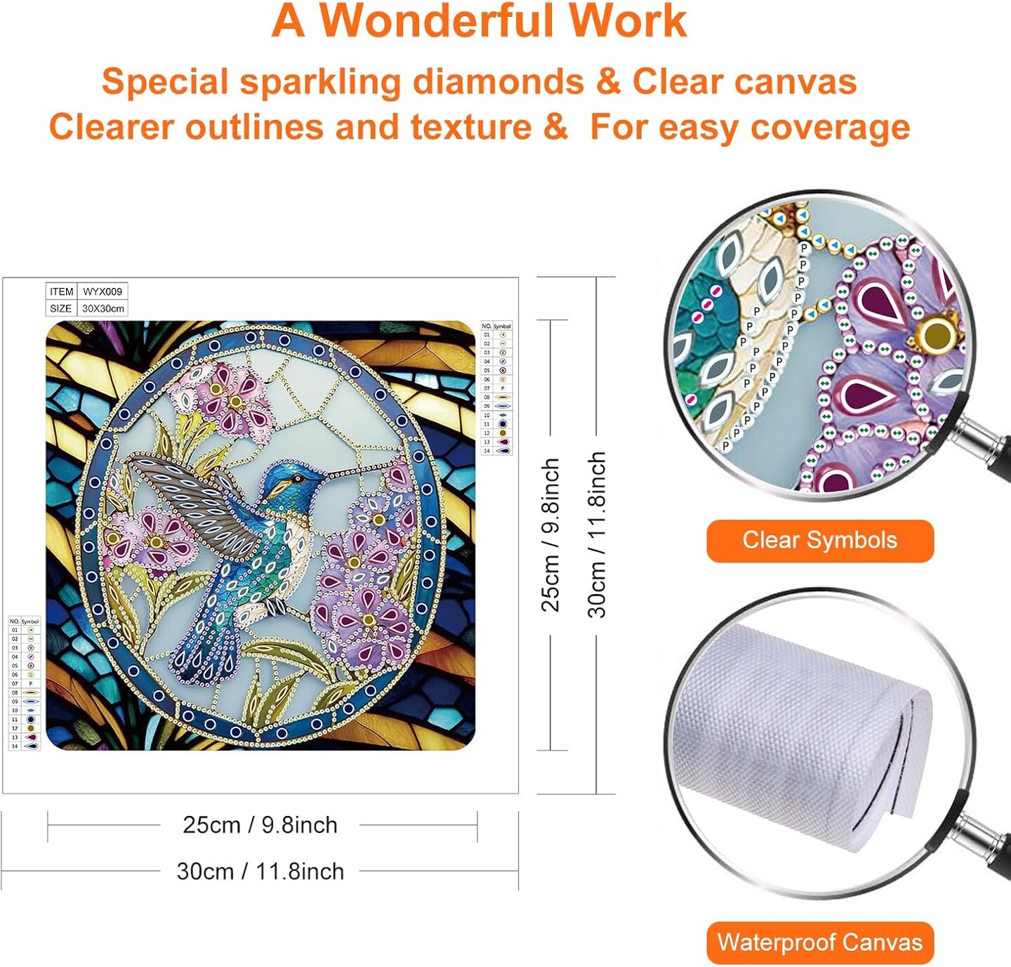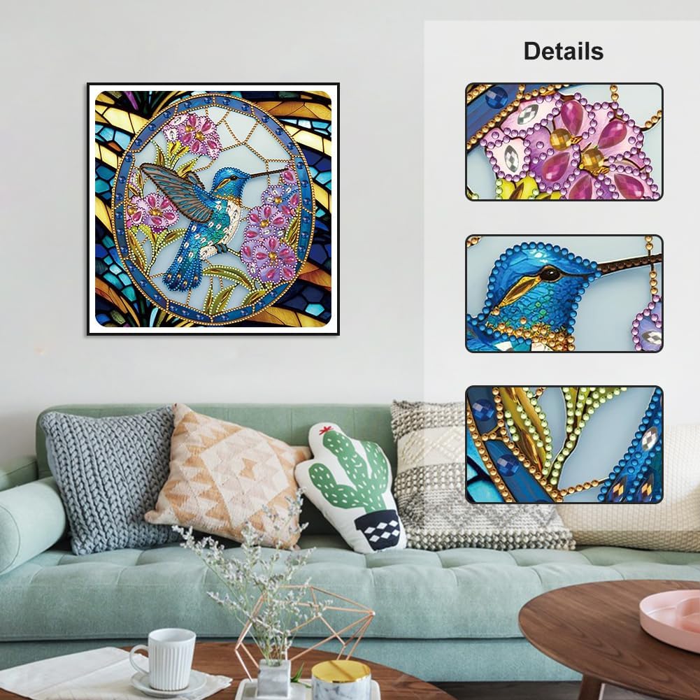Diamond Painting Kits for Adults, 5D Special Shape Diamond Art Kits for Beginners, Crystal Rhinestones Diamond Painting for Home Wall Decoration Gift 12×12inch, Hummingbird