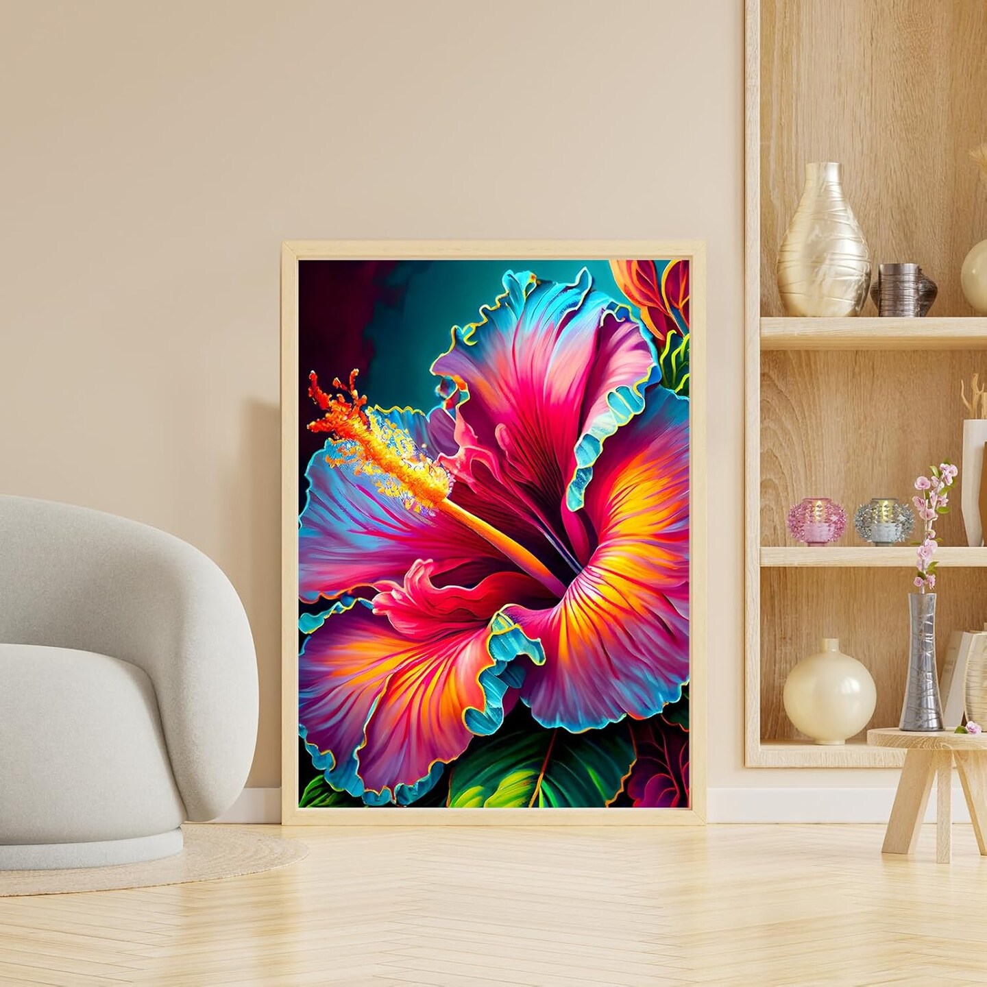 Diamond Painting Kits for Adults, Hibiscus Diamond Art Kits, 5D Flowers Diamond Painting, DIY Round Full Drill Diamond Painting Gem Arts and Crafts for Home Decor 12x16 inch