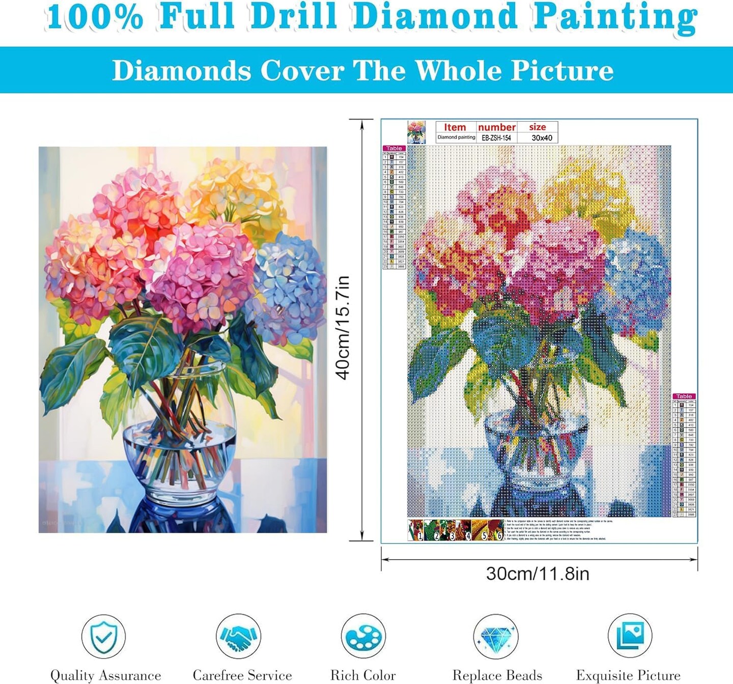 Diamond Painting Kits for Adults, Hydrangea in Glass 5D Diamond Art Kits for Beginner DIY Full Drill Diamond Dots Crystal Craft Kits for Home Wall Decor Gifts 11.8x15.7 inch