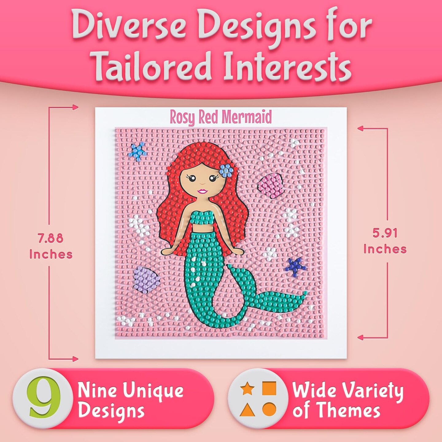 Diamond Painting Kits for Kids | 9 Unique Designed Canvases - Unicorn, Fairy, Mermaid | Arts & Crafts with Minimum Mess | Diamond Art Kits for Kids | Gem Painting Kit | Jewel Art | Crystal Art