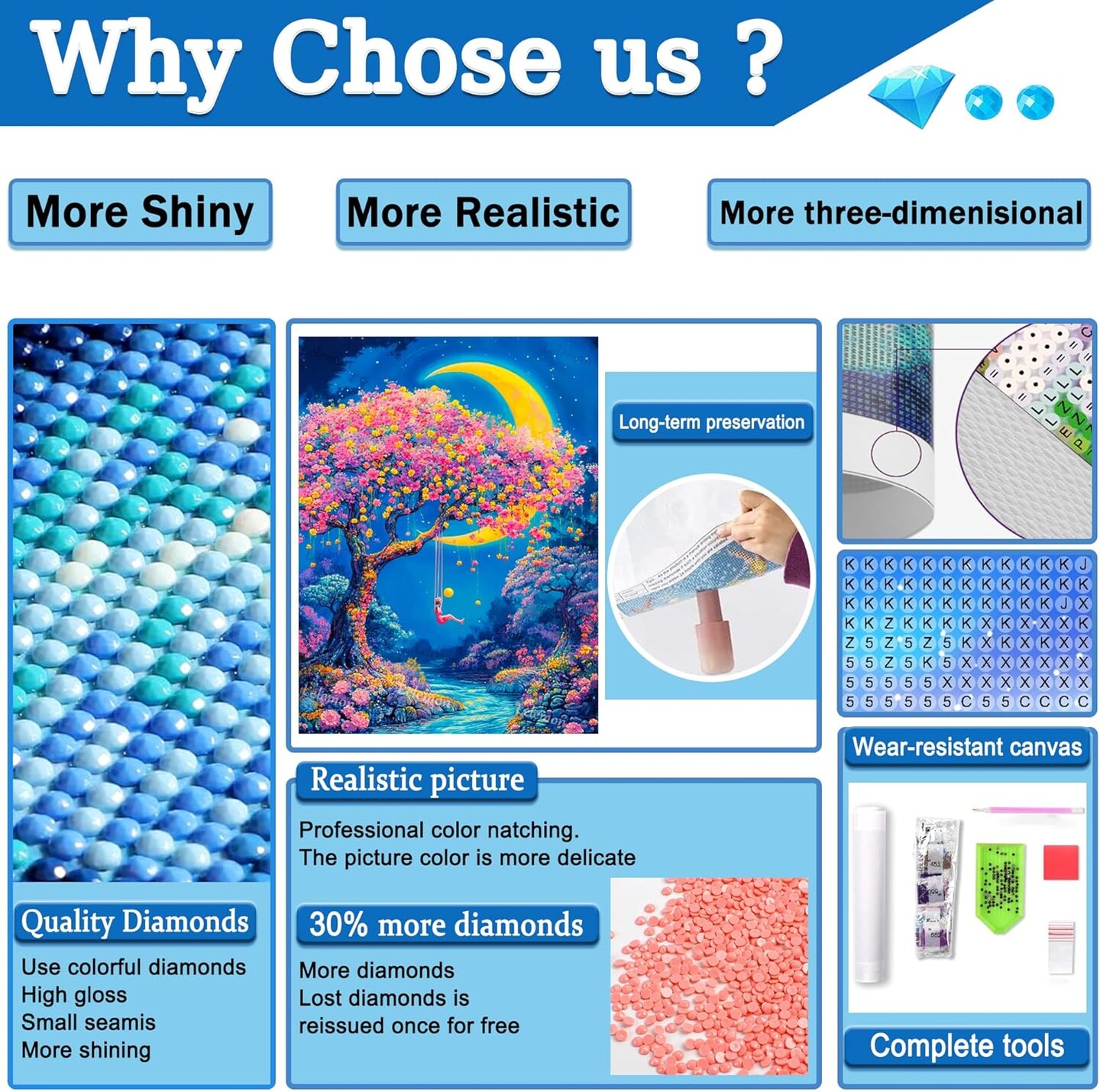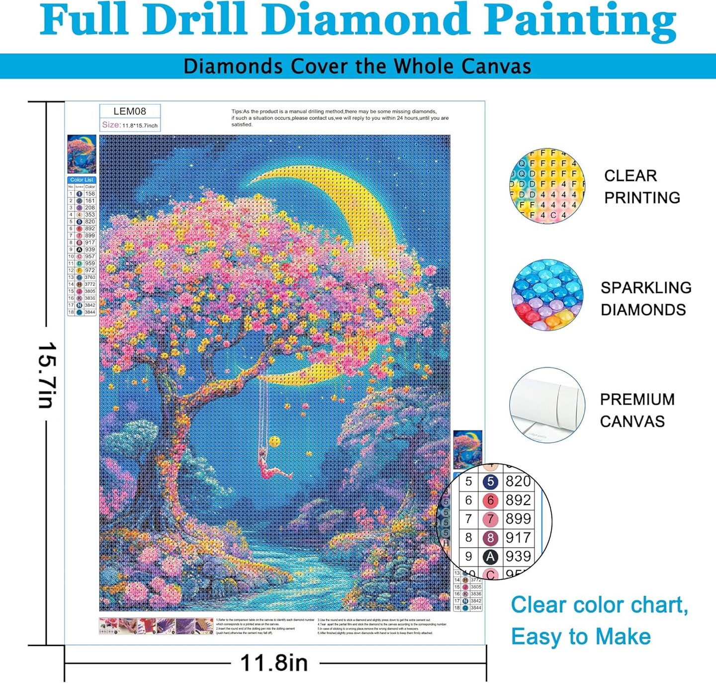 Diamond Painting Kits,Moon Diamond Art for Adults,5d Diamond Painting Kits for Adults,Scenery Diamond Art Kits with Diamond Painting Accessories for Home Wall Decor 12 x 16inch
