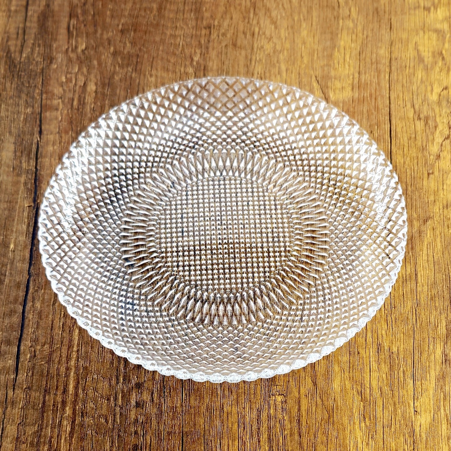 Diamond Pattern Glass Salad Plate 7.5 Inch Heat Resistant Clear