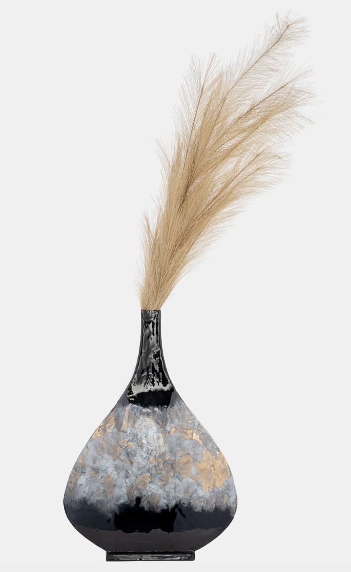 Diana 18"h Black and Gold Modern Metal Vase