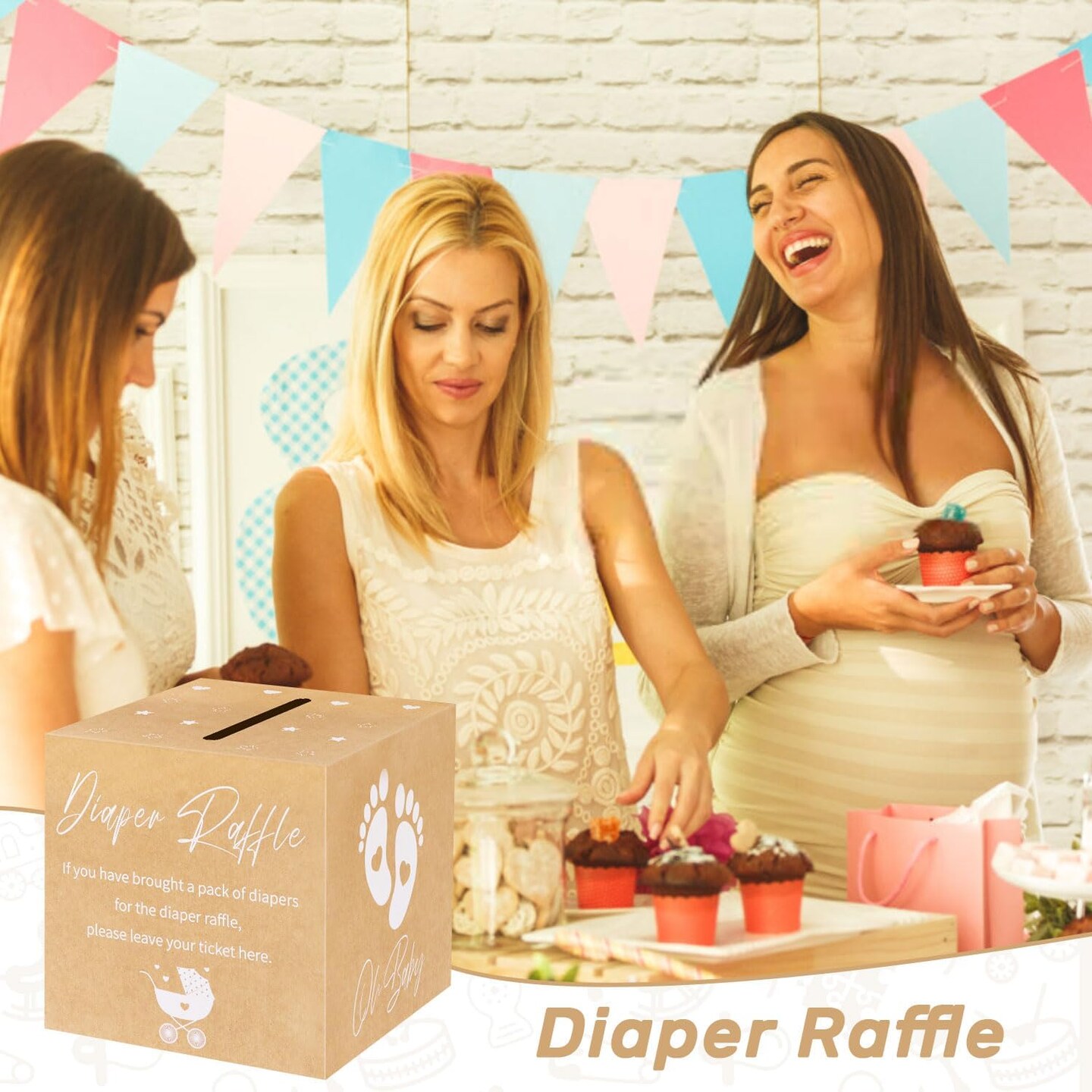 Diaper Raffle Box Set for Baby Shower Party, Gender Reveal Diaper Raffle Tickets for Baby Shower Games Invitations Diaper Raffle Cards Sign