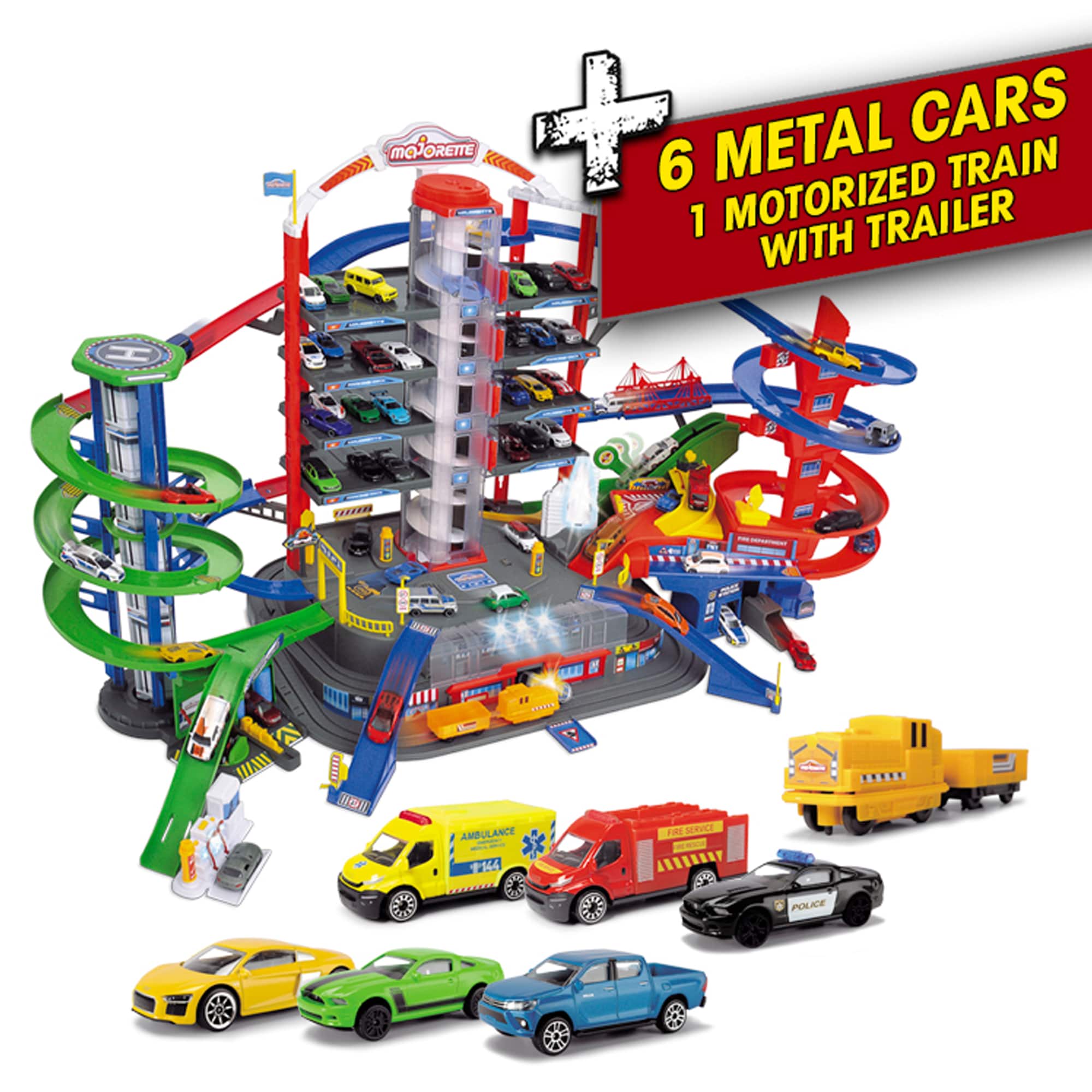 Dickie Toys Majorette Super City Garage Playset with 6 Die-Cast Cars