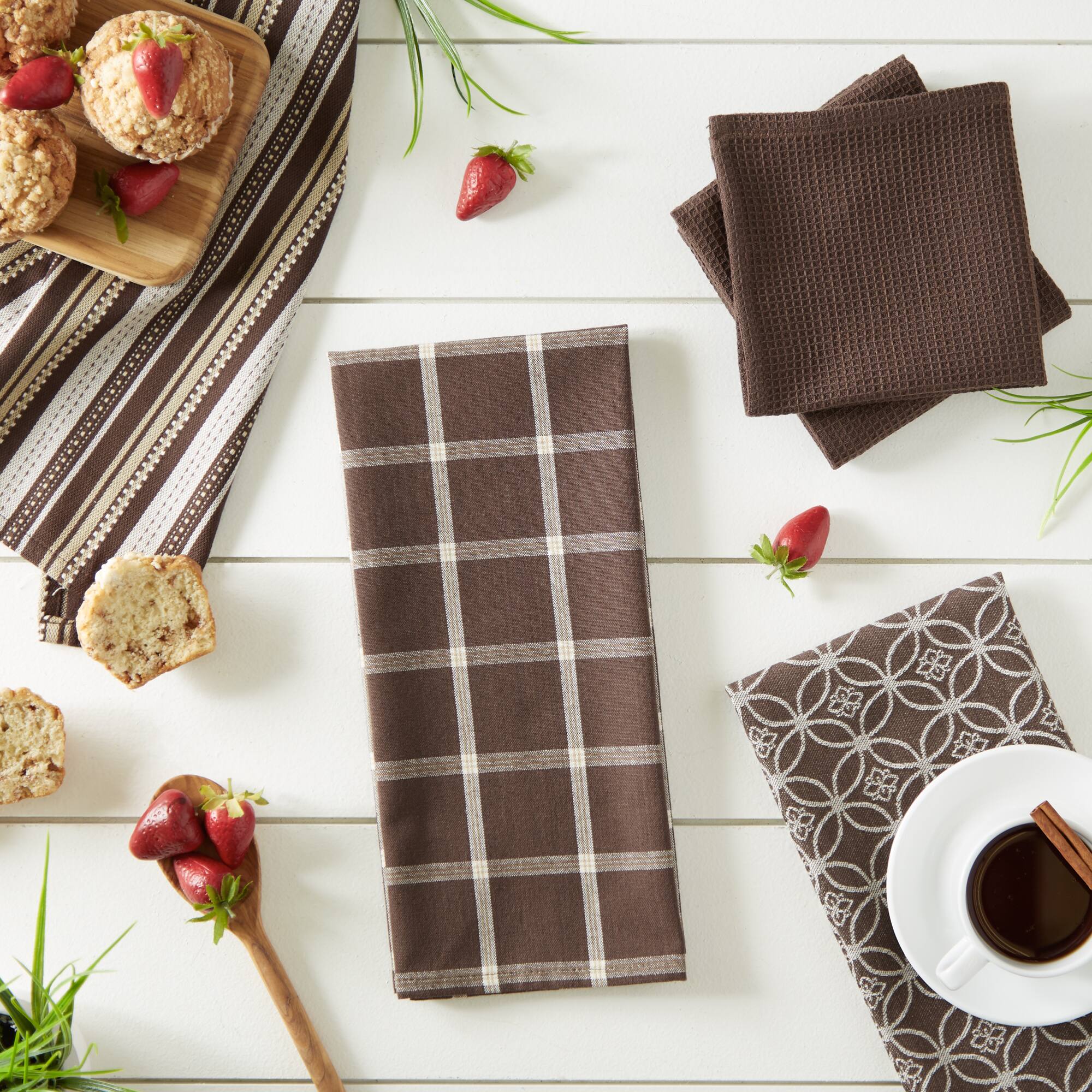 DII® Assorted Dark Brown Dishtowel & Dishcloth (Set of 5)