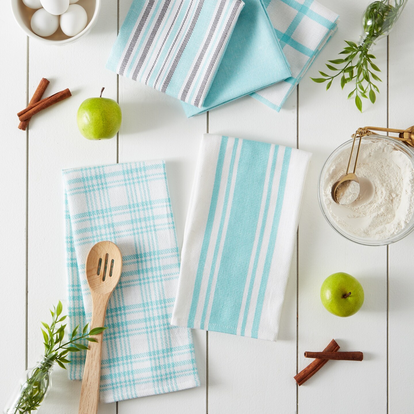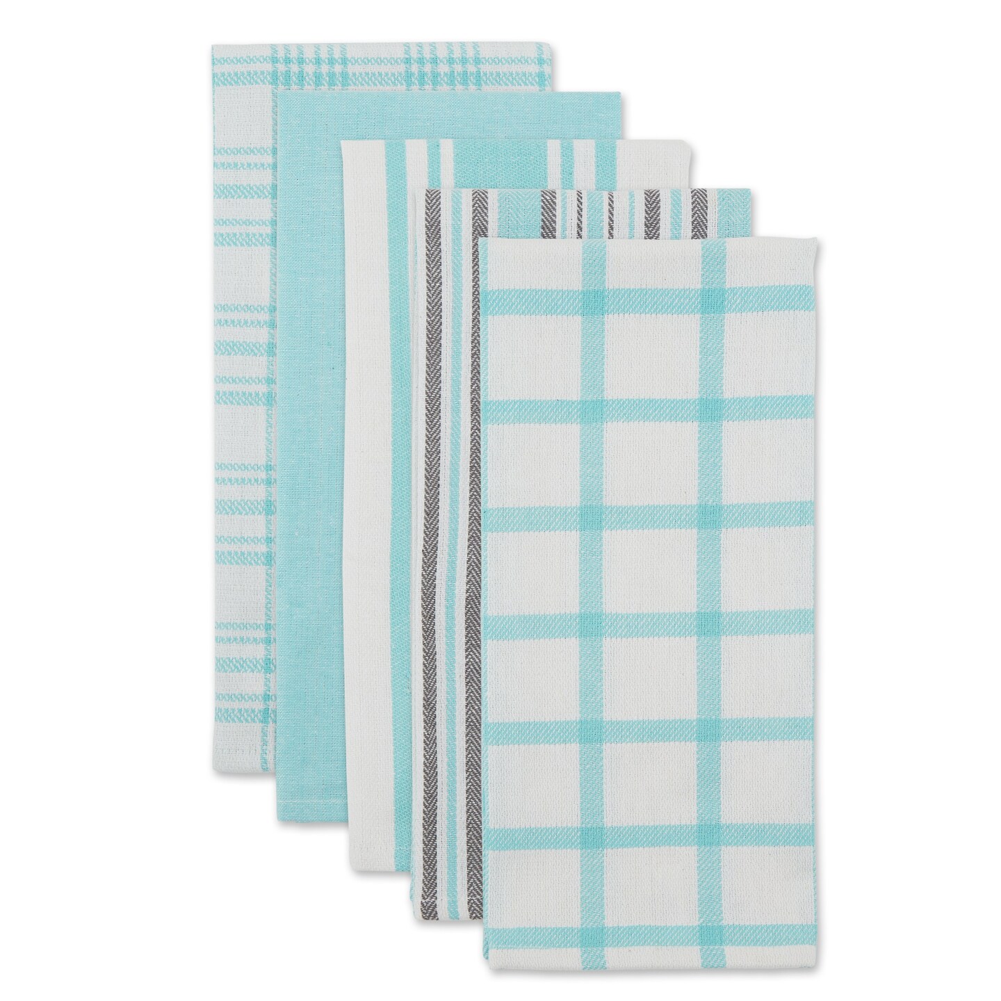 DII Asst Aqua Woven Dishtowels (Set of 5)