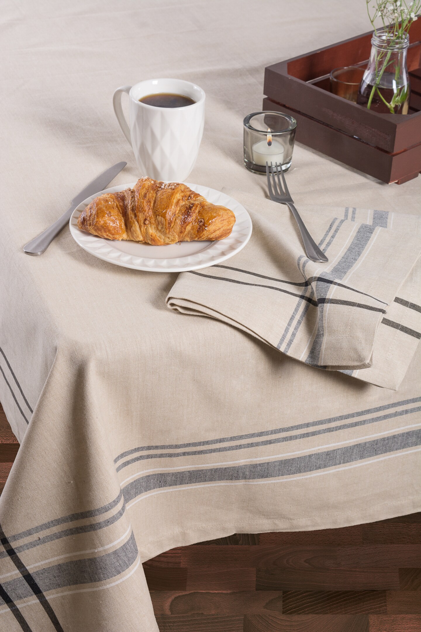 DII Black French Stripe Tablecloth
