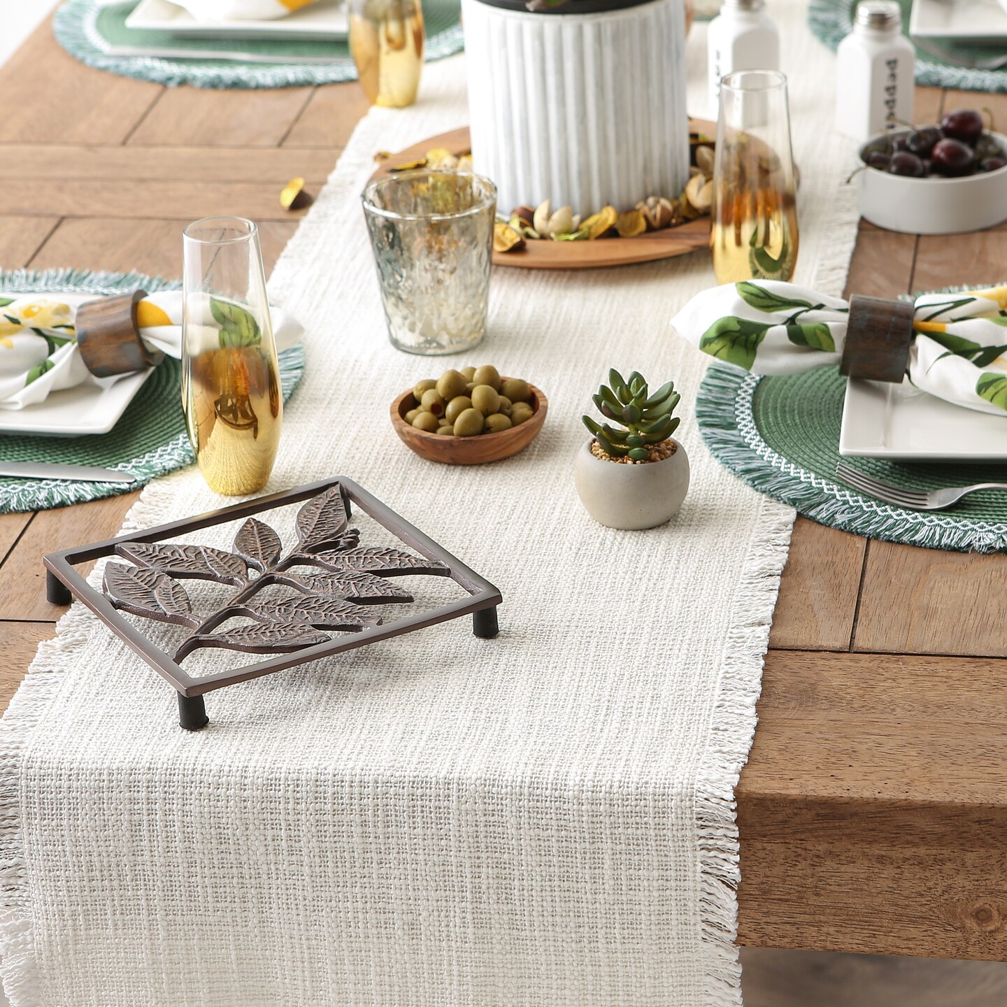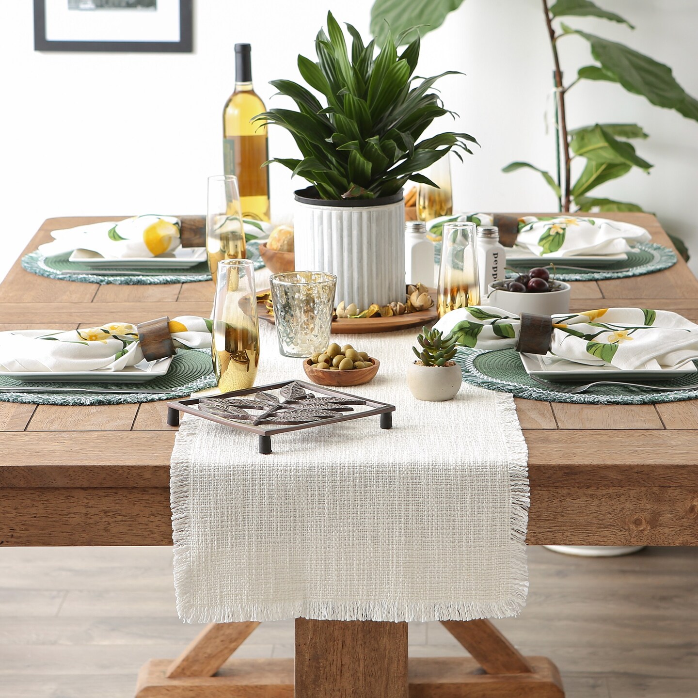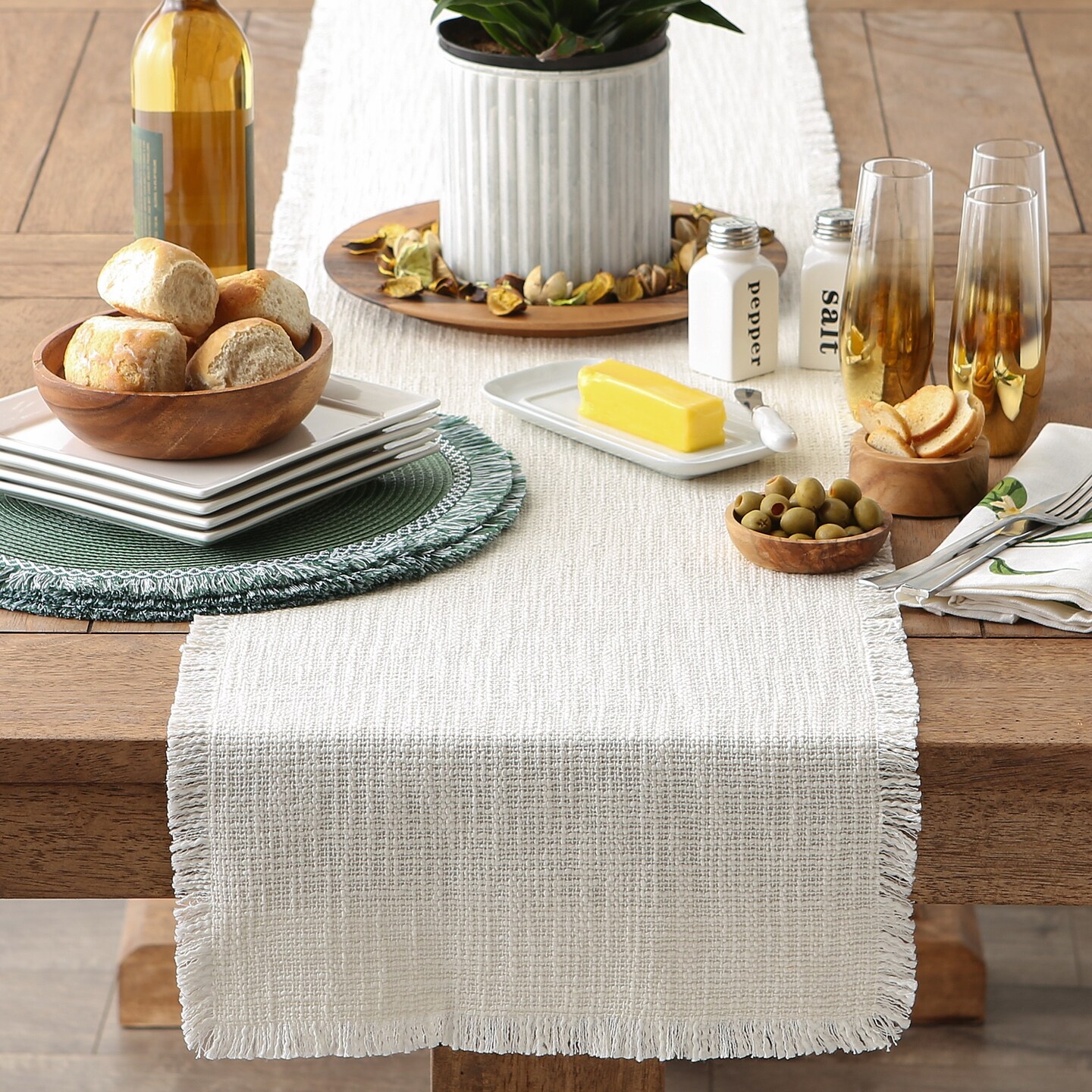 DII Cream Sugar Basket Fringe Table Runner 14x72