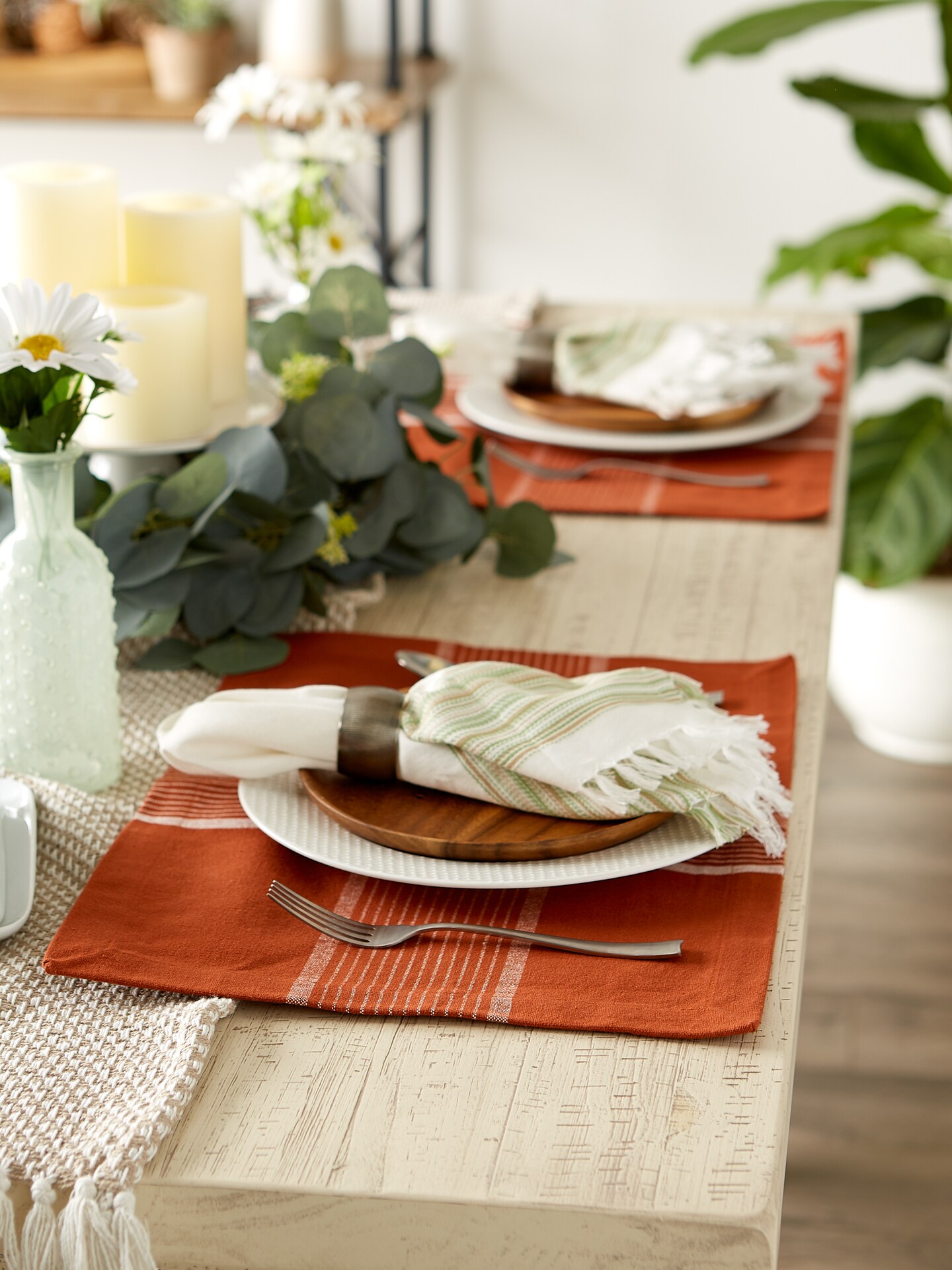 DII Grass Green Stripes With Fringe Placemat (Set of 6)