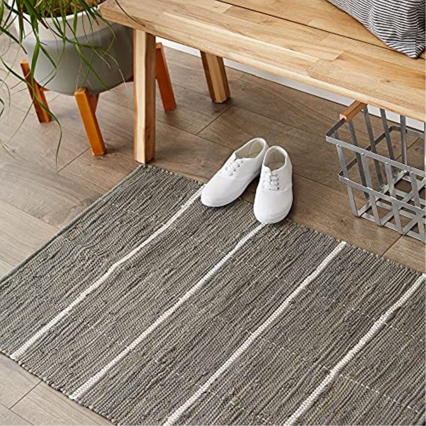 DII Gray and Cream Farmhouse Check Rug 26x40 inches