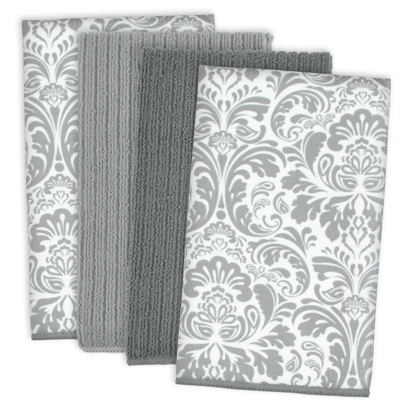 DII Gray Damask Microfiber Dishtowel (Set of 4)