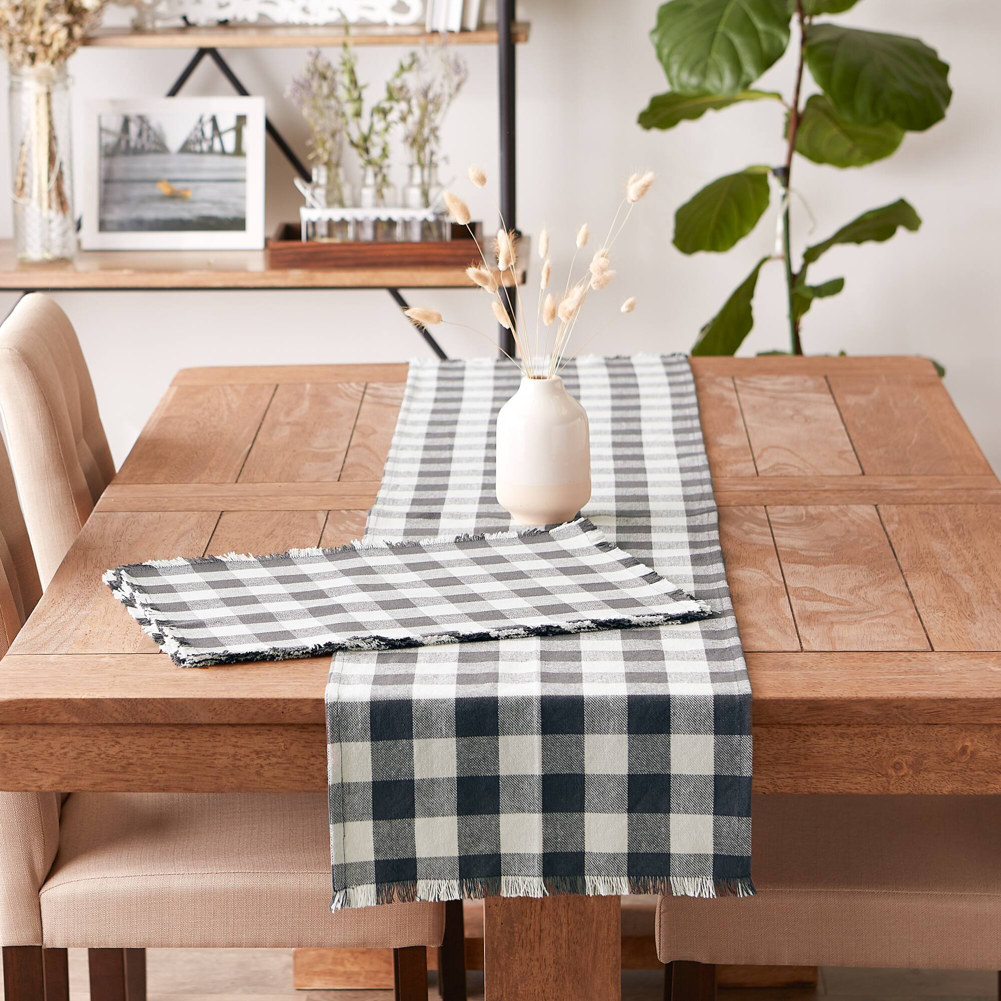 DII® Heavyweight Check Fringed Cotton Placemats, 6ct.