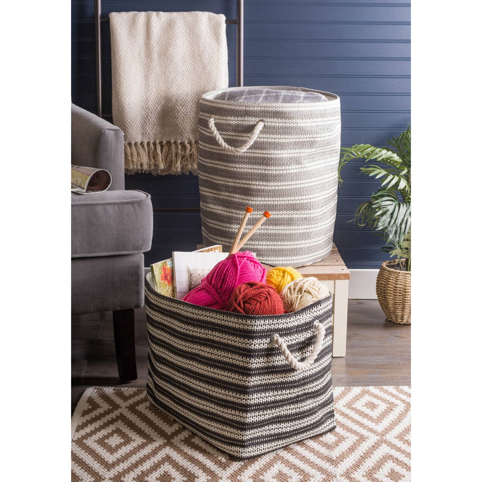 DII® Large Gray Basketweave & White Stripe Rectangle Paper Basket