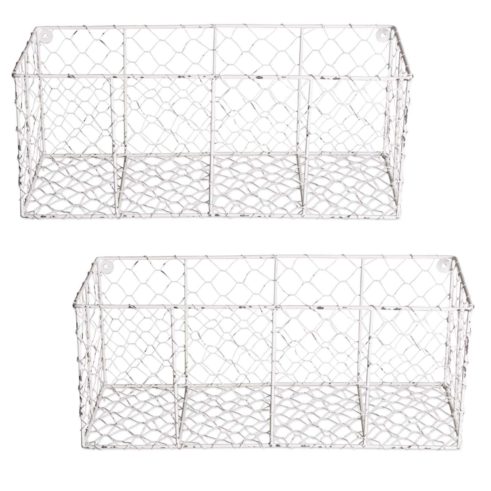 DII® Medium Antique White Wall Mount Chicken Wire Baskets, 2ct.