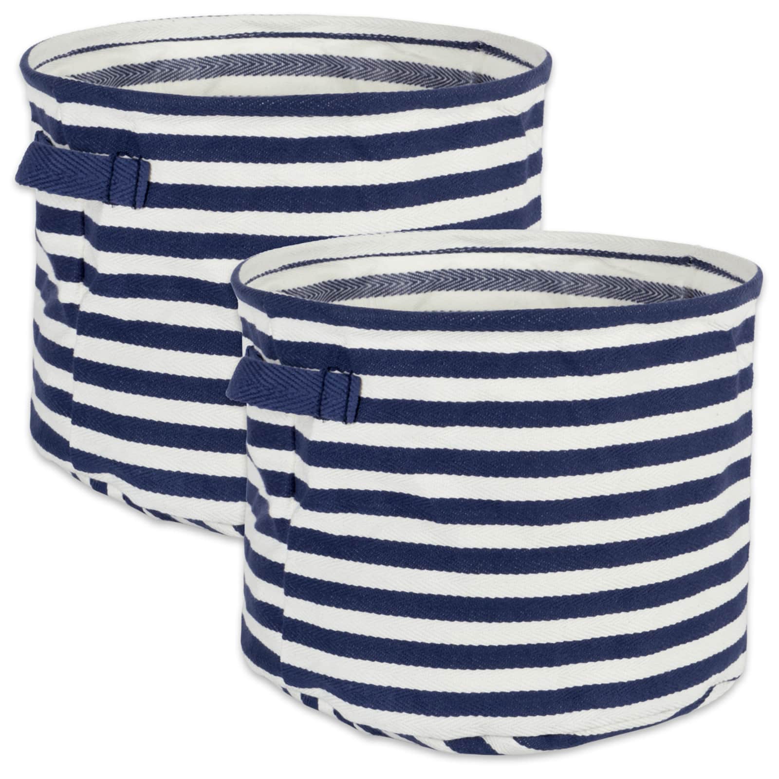 DII® Medium Round Stripes PE-Coated Herringbone Woven Cotton Laundry Bin, 2ct.