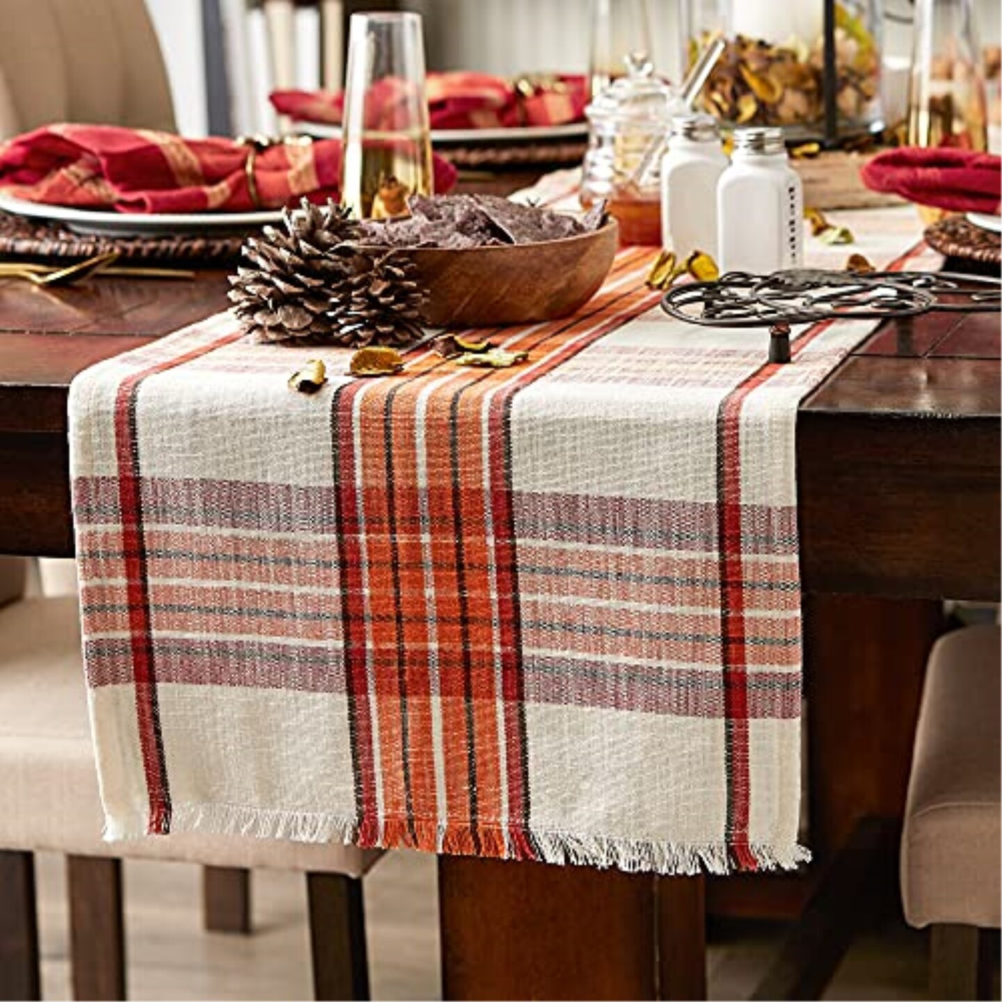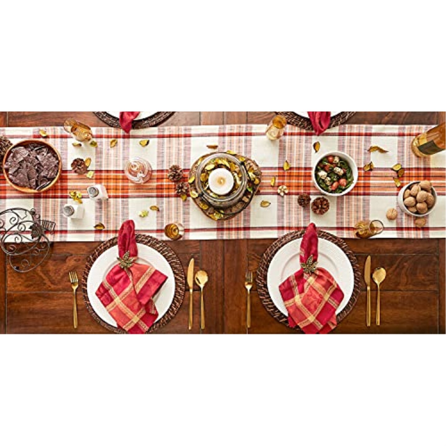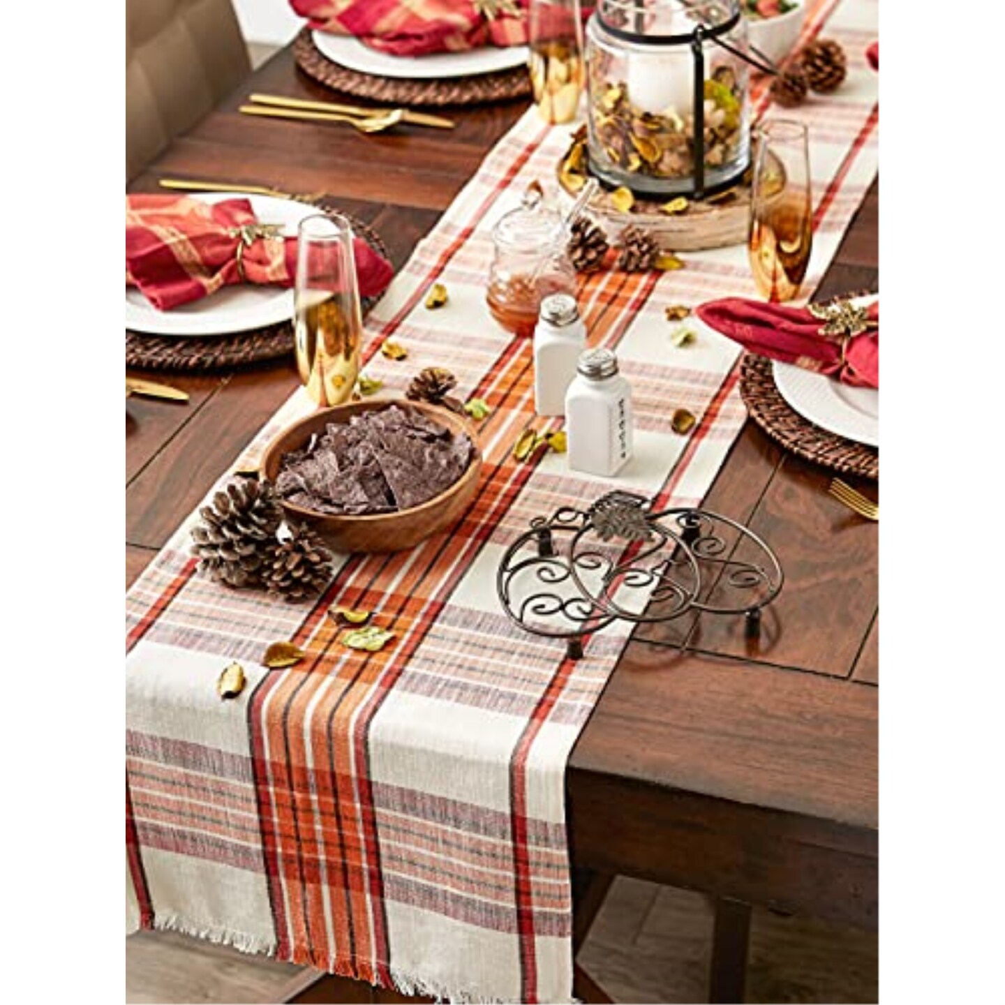 DII Pumpkin Spice Plaid Table Runner 14x108"