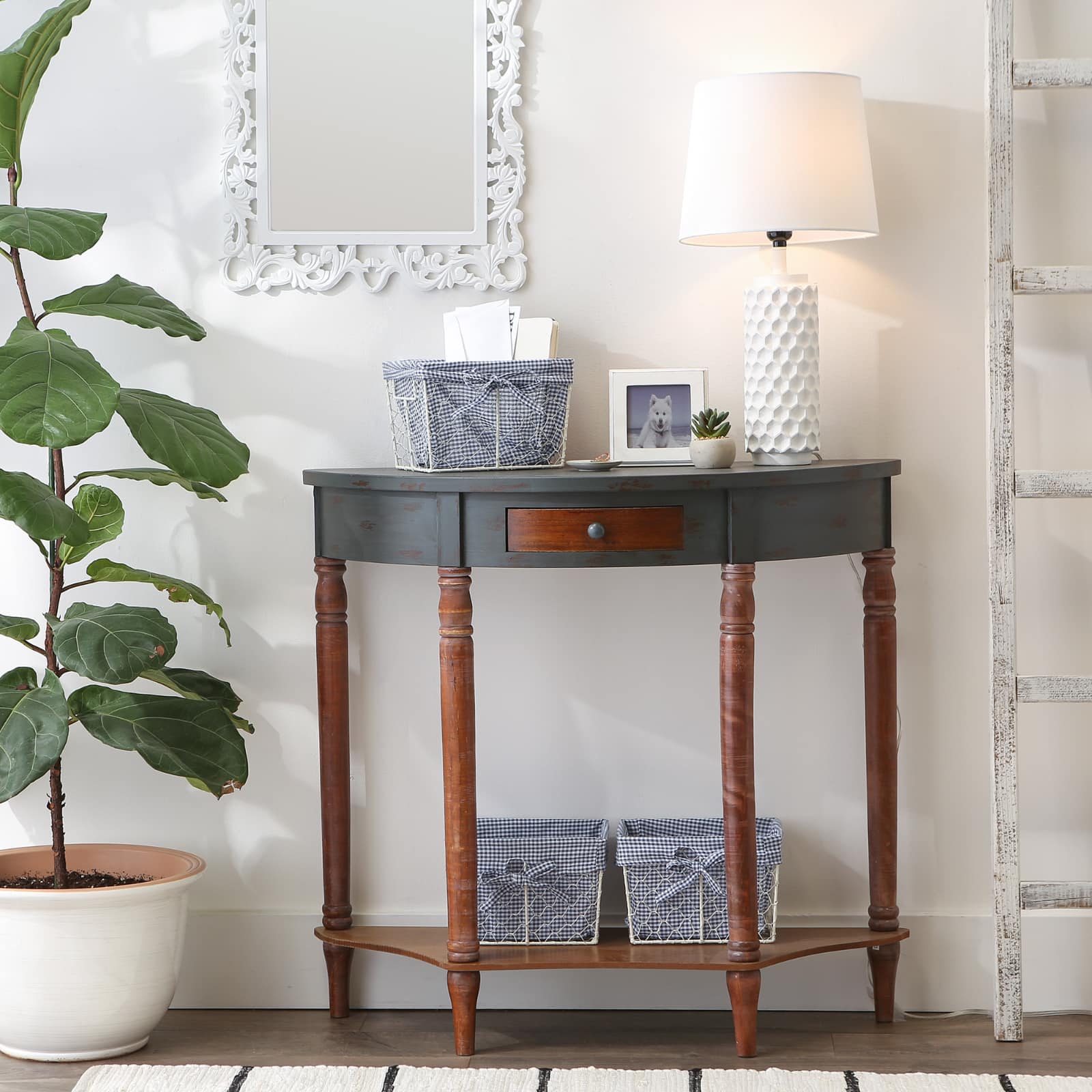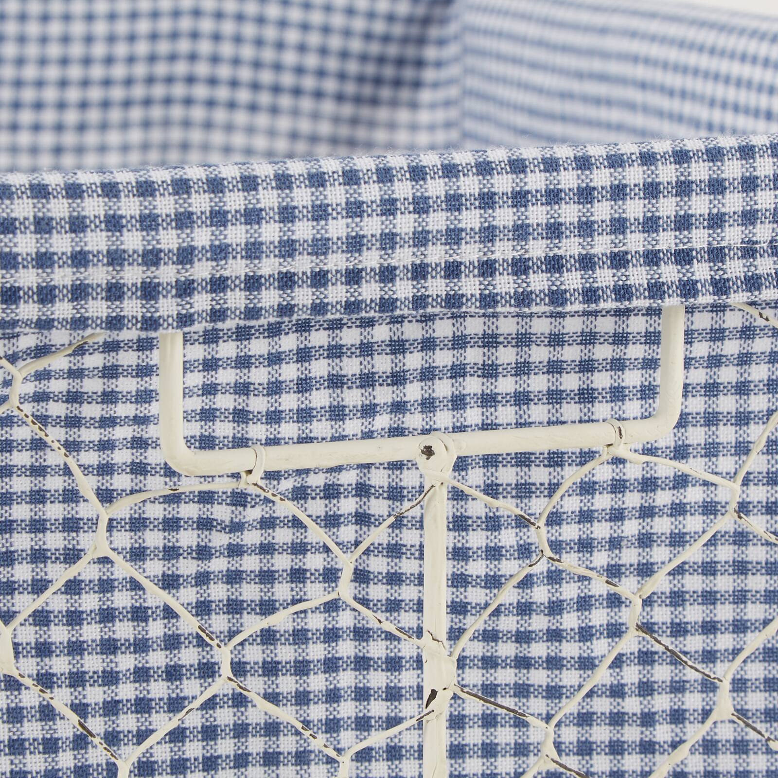 DII® Small Antique White Chicken Wire Baskets with French Blue Gingham Liners, 3ct.