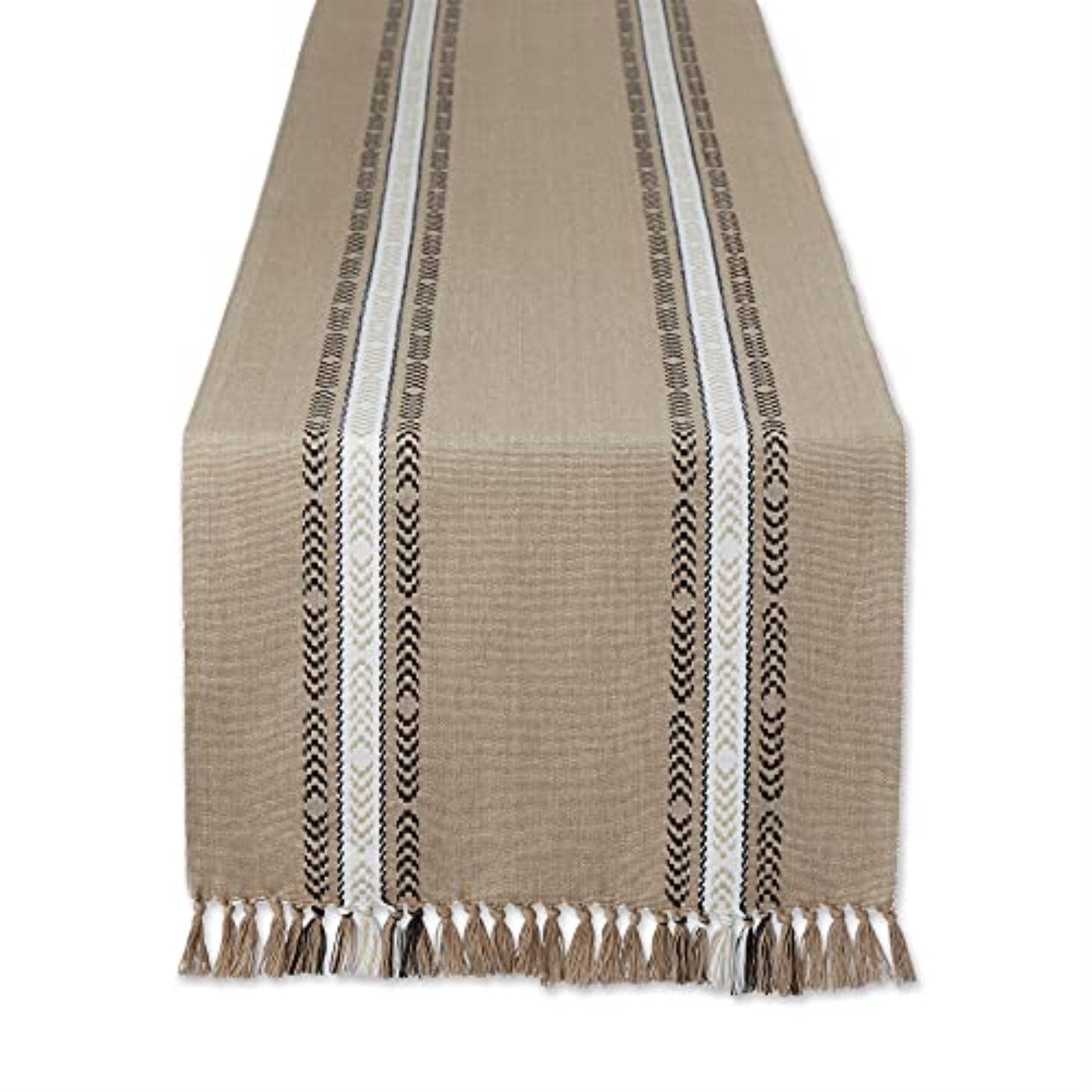DII Stone Dobby Striped Fringe Ribbed Table Runner 14x108