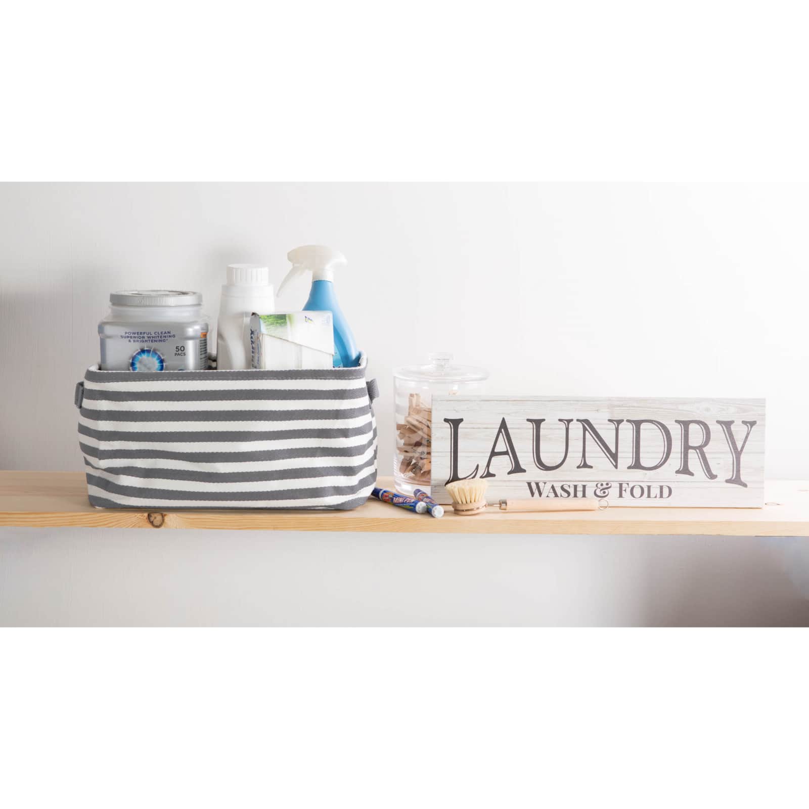 DII® Stripes PE-Coated Herringbone Woven Cotton Laundry Bin Set