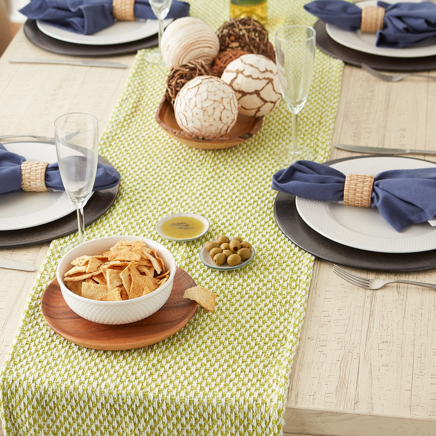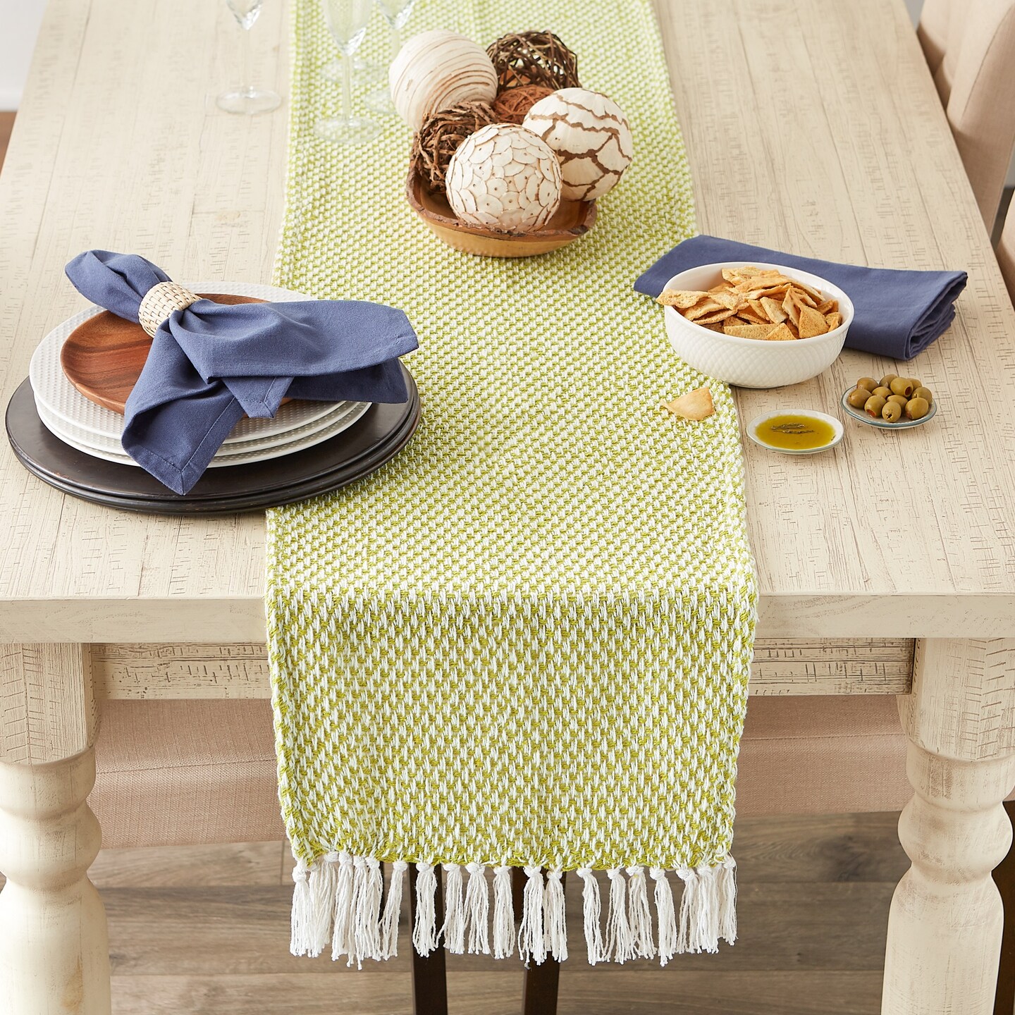 DII Teal Woven Table Runner 15x72