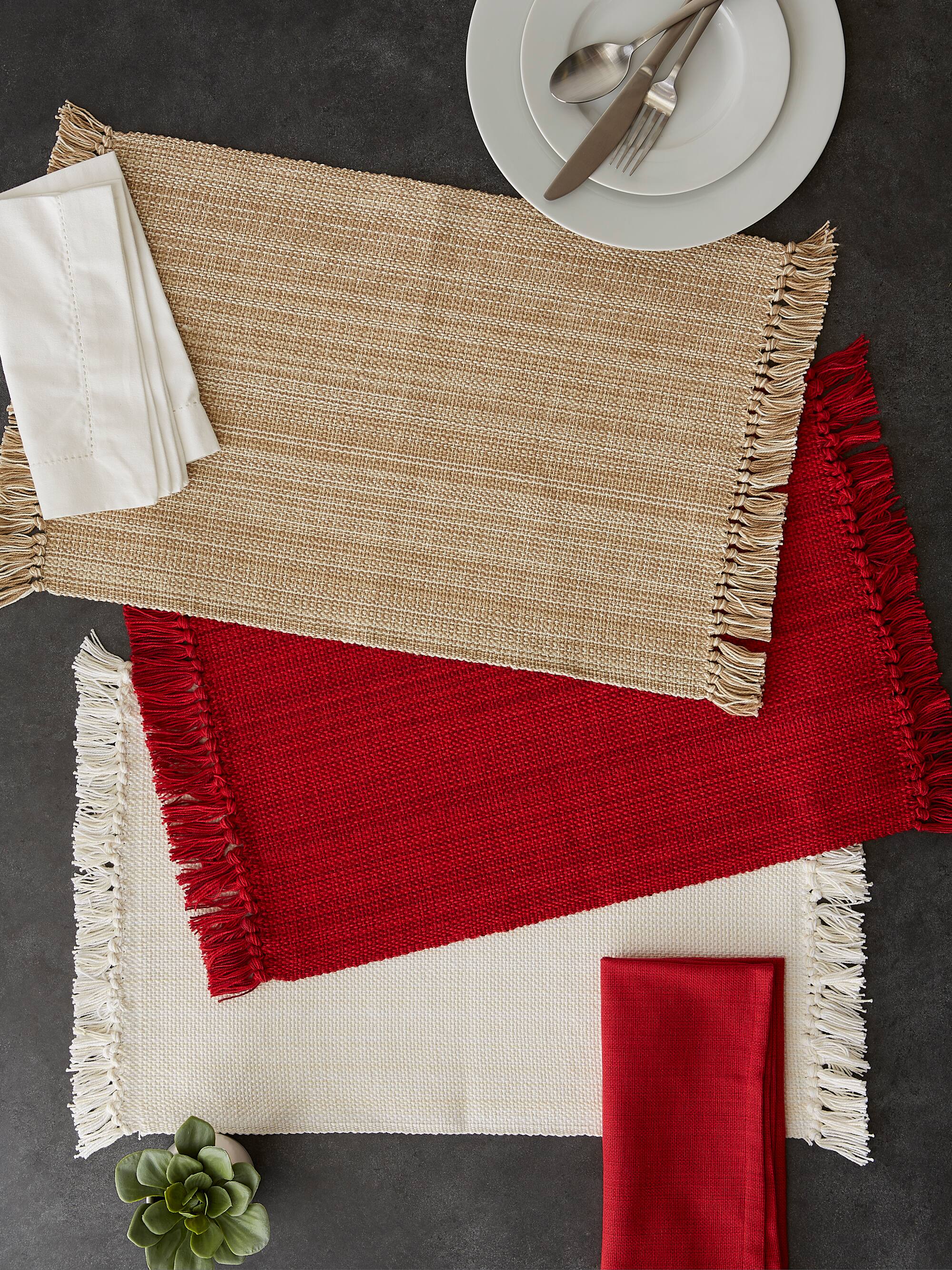 DII® Variegated Red Fringe Placemat & Napkin Set, 8ct.