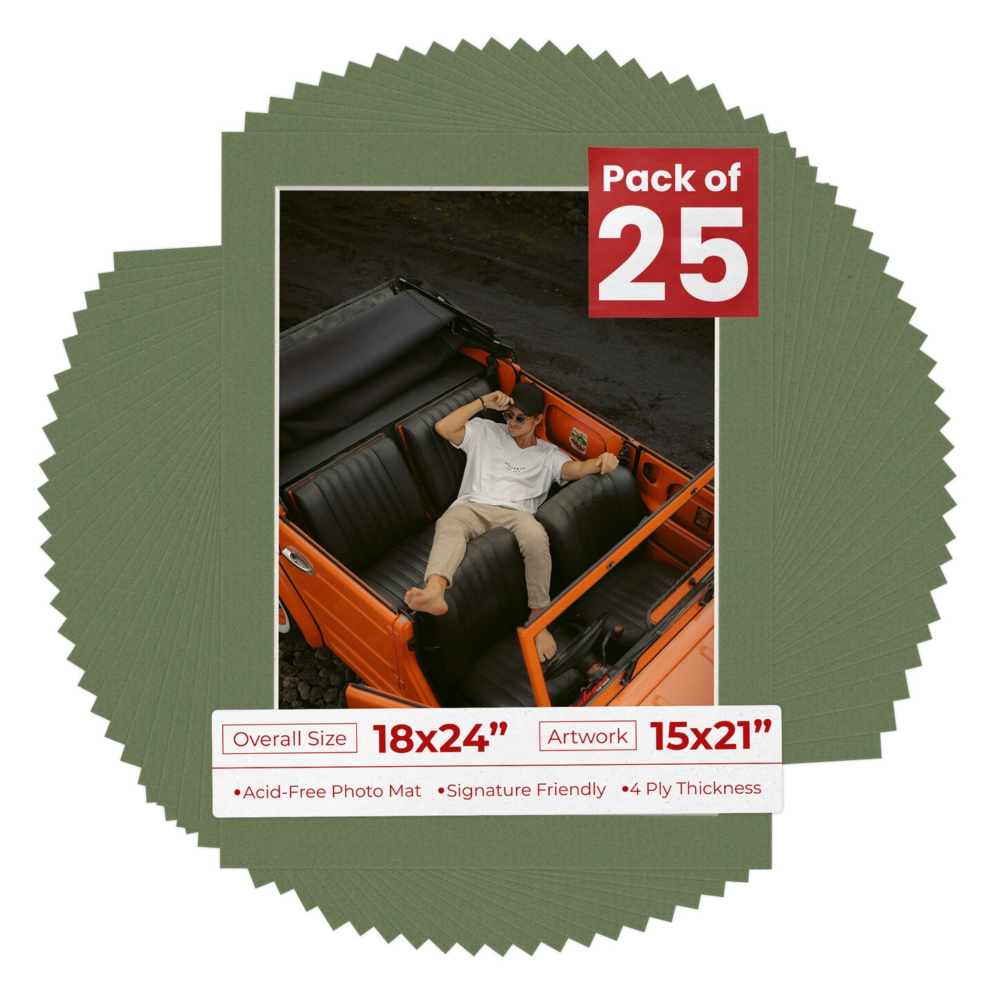 Dill Green Mat Board for 18x24 Frames - Fits 15x21 Photos