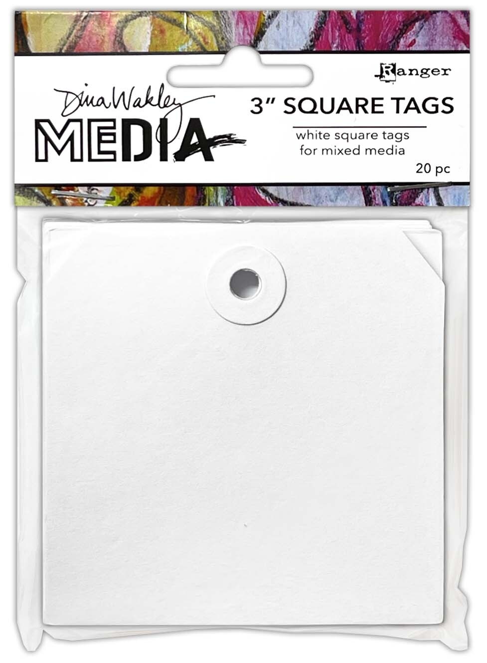 Dina Wakley MEdia Square Tags With Reinforced Holes-3"