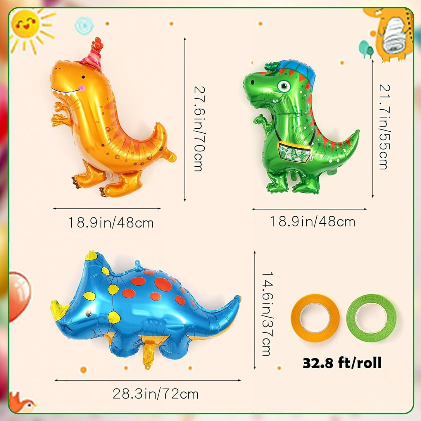 Dinosaur Balloons - 7 Pcs Baby Dinosaur Foil, Giant Dino Animal for Birthday Party Decoration