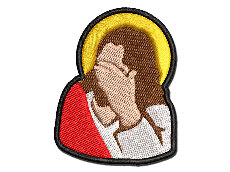 Disapproving Jesus Face Palm Multi-Color Embroidered Iron-On or Hook & Loop Patch Applique