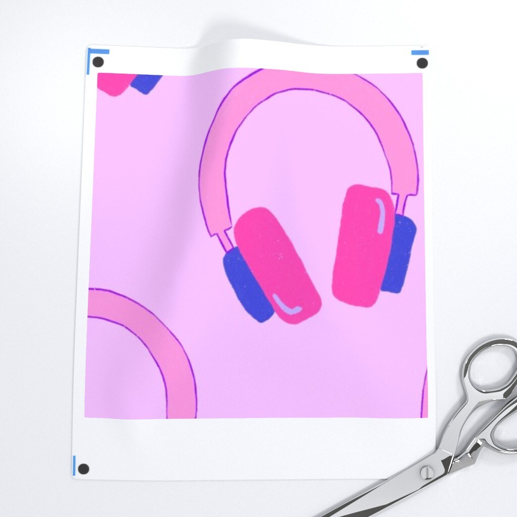 Disco Music Party Headphones Y2K Pink Custom Printed Fabric by Spoonflower Various Fabrics by the Yard or Fat Quarter