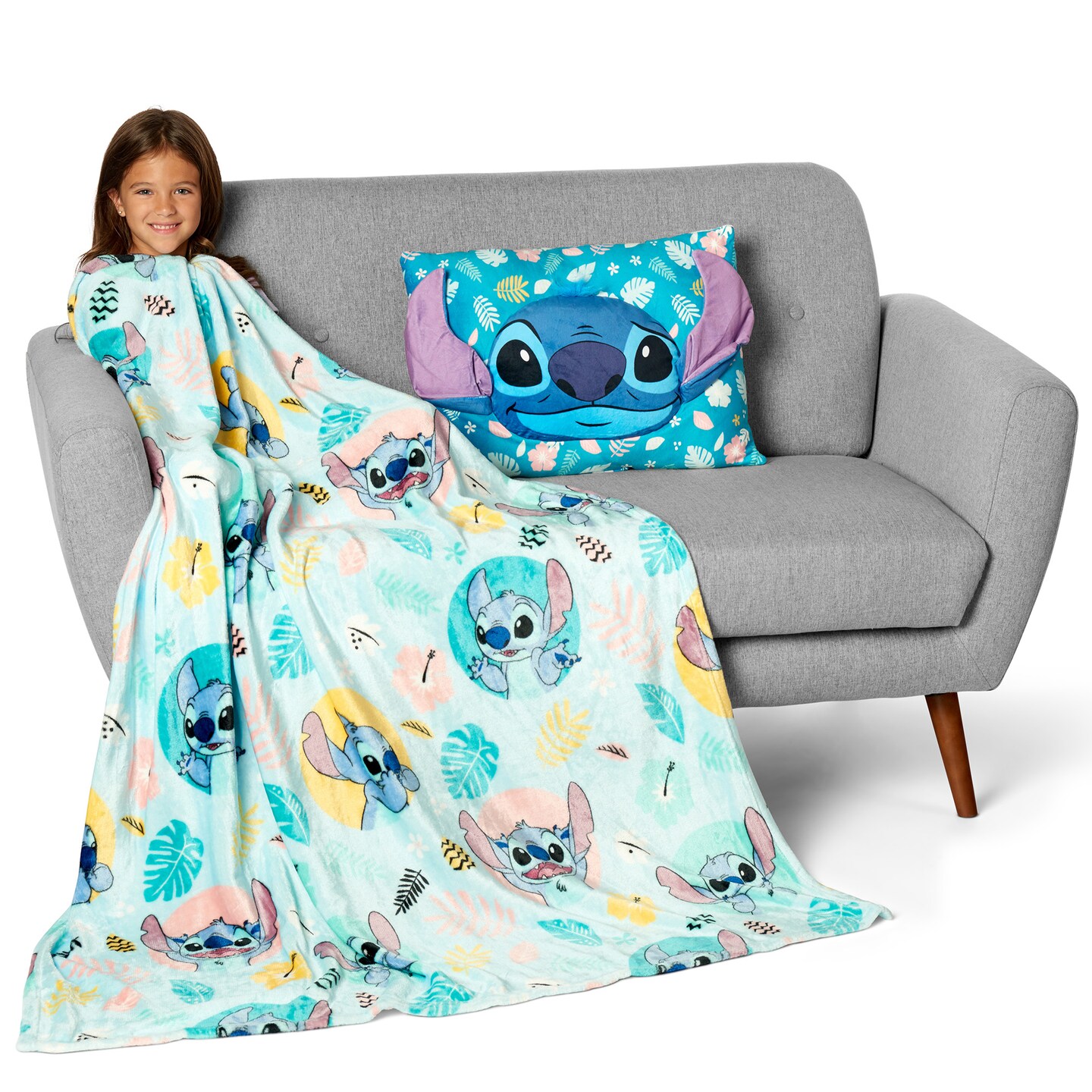 Disney Lilo and Stitch Alien Dreams Silk Touch Throw Blanket 50X60 inches with Plush Pocket Pillow 14X20 inches