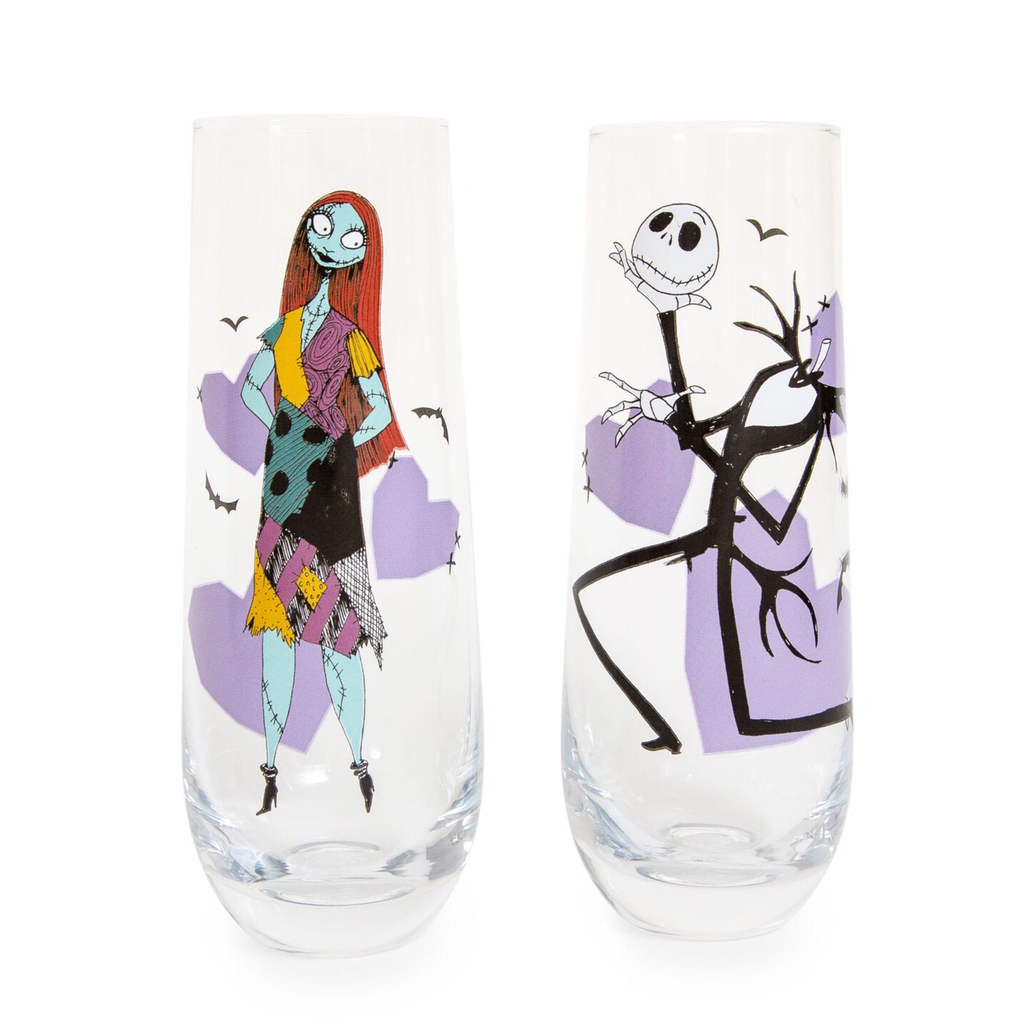 Disney The Nightmare Before Christmas Jack and Sally Fluted Glassware | Set of 2