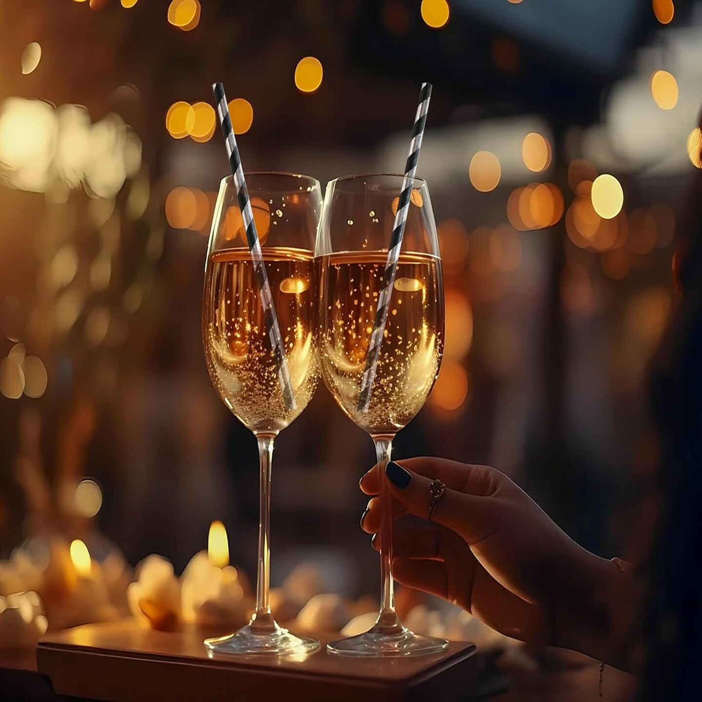 Disposable Paper Straws - Black Silver Striped Drinking Straws for Bar, Wedding, Brithday, Party Supply, Cake Pop Sticks, Cocktail, Drinks, 7.75" x 0.24"