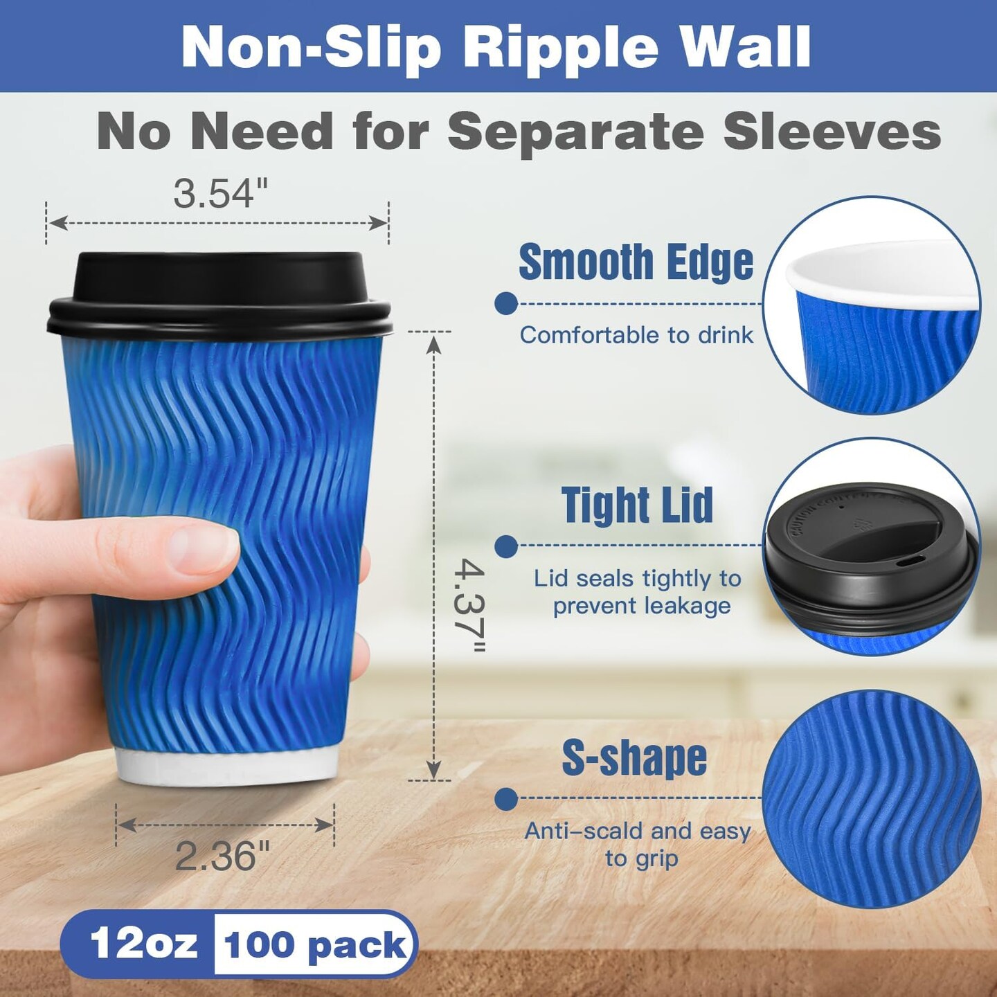 Disposable To Go Coffee Cups with Lids 12 oz 100 Pack
