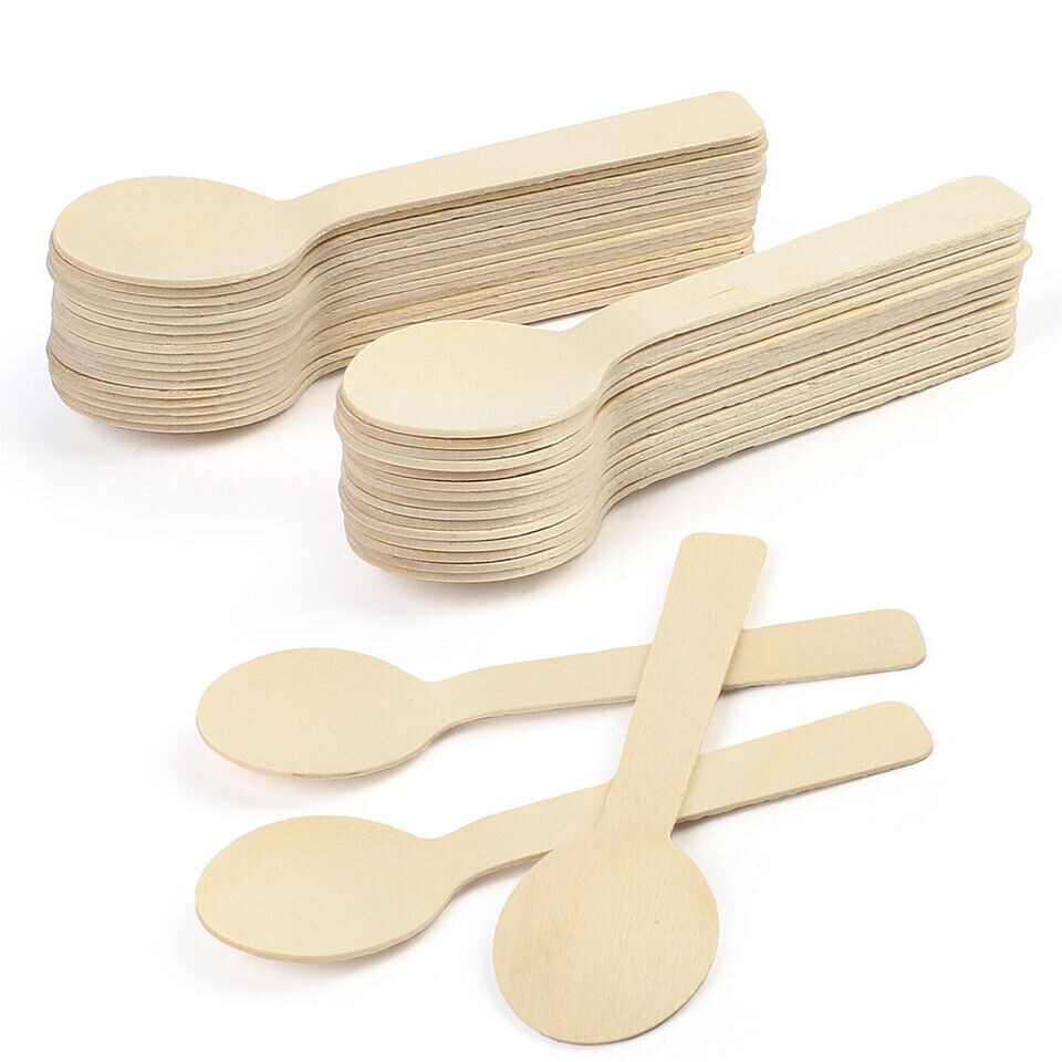 Disposable Wooden Spoons Wood Cutlery Spoon Tasting Sampling Taster Spoons