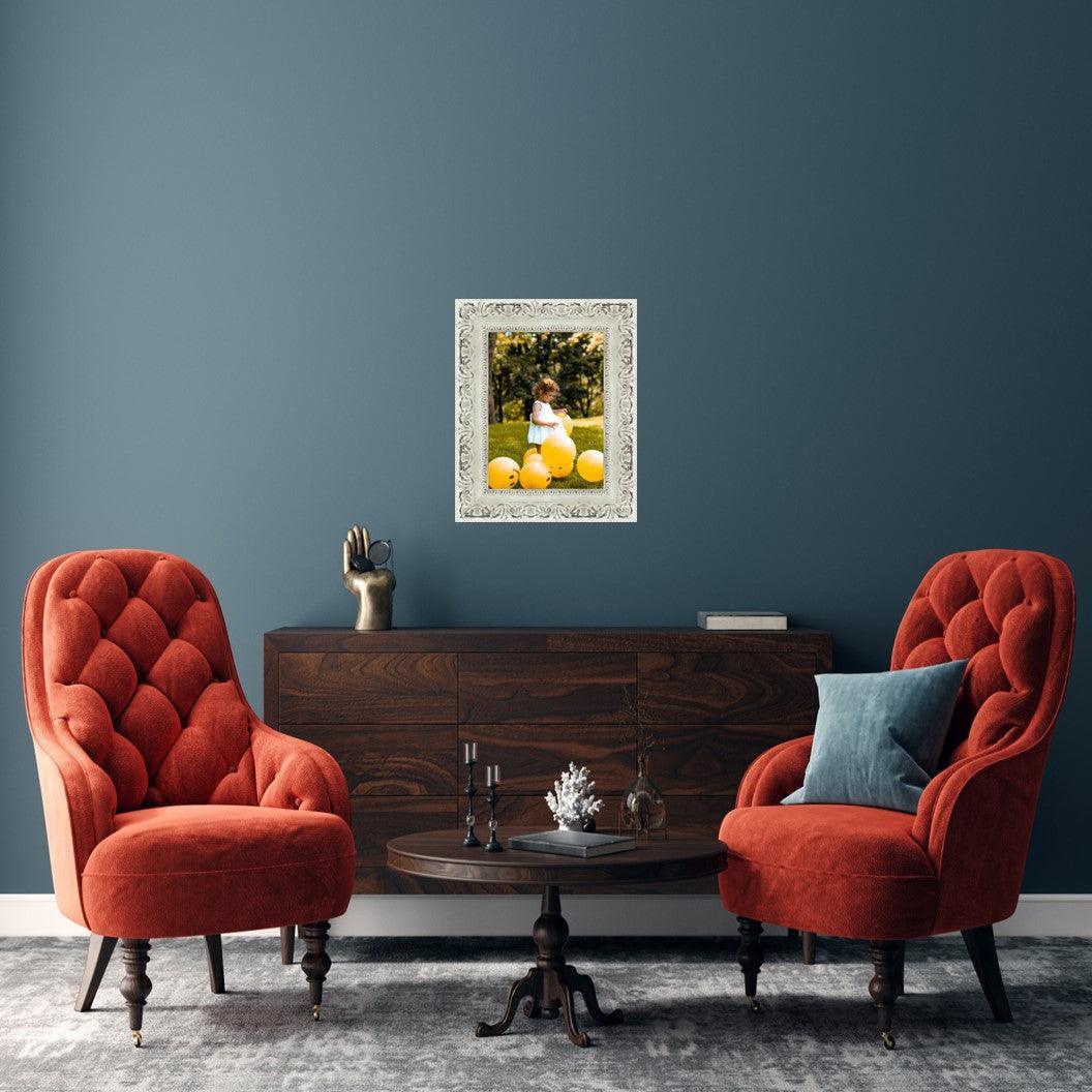 Distressed Aged White Wash Wood Picture Frame - 4 Inch Wide
