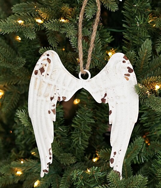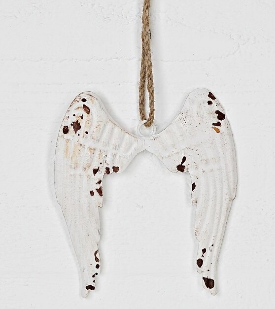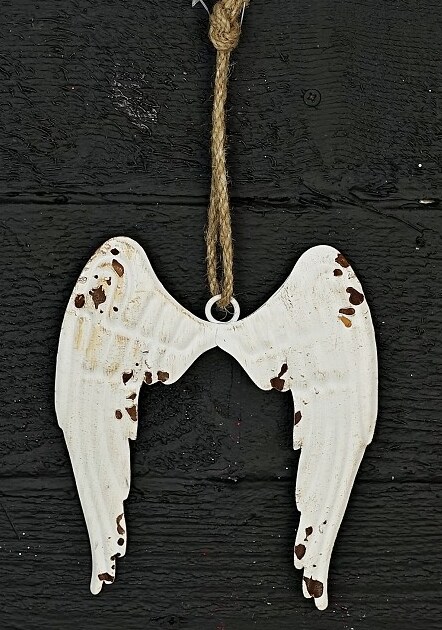Distressed Metal Angel Wings Ornament – Rustic Farmhouse Christmas & Memorial Décor-M10823